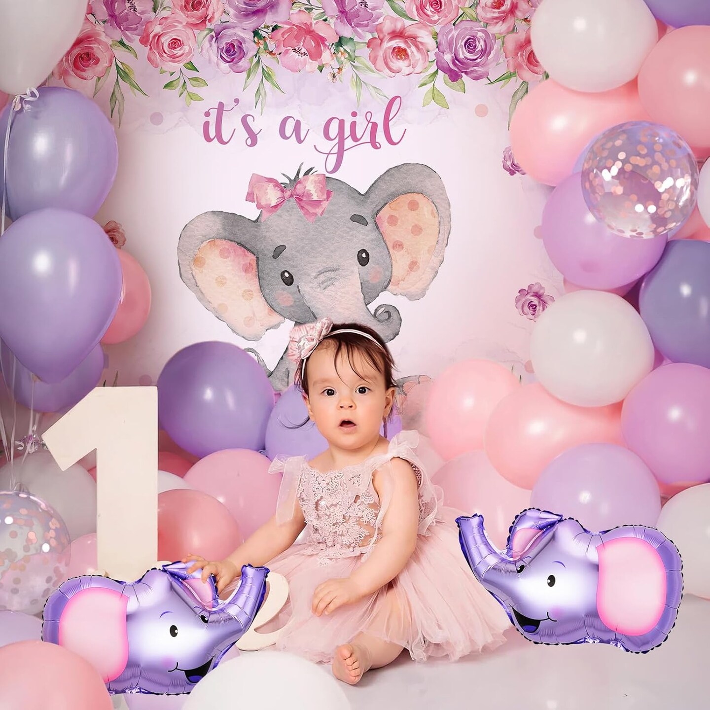 Elephant Baby Shower Decorations for Girl (Pink, Purple, White)