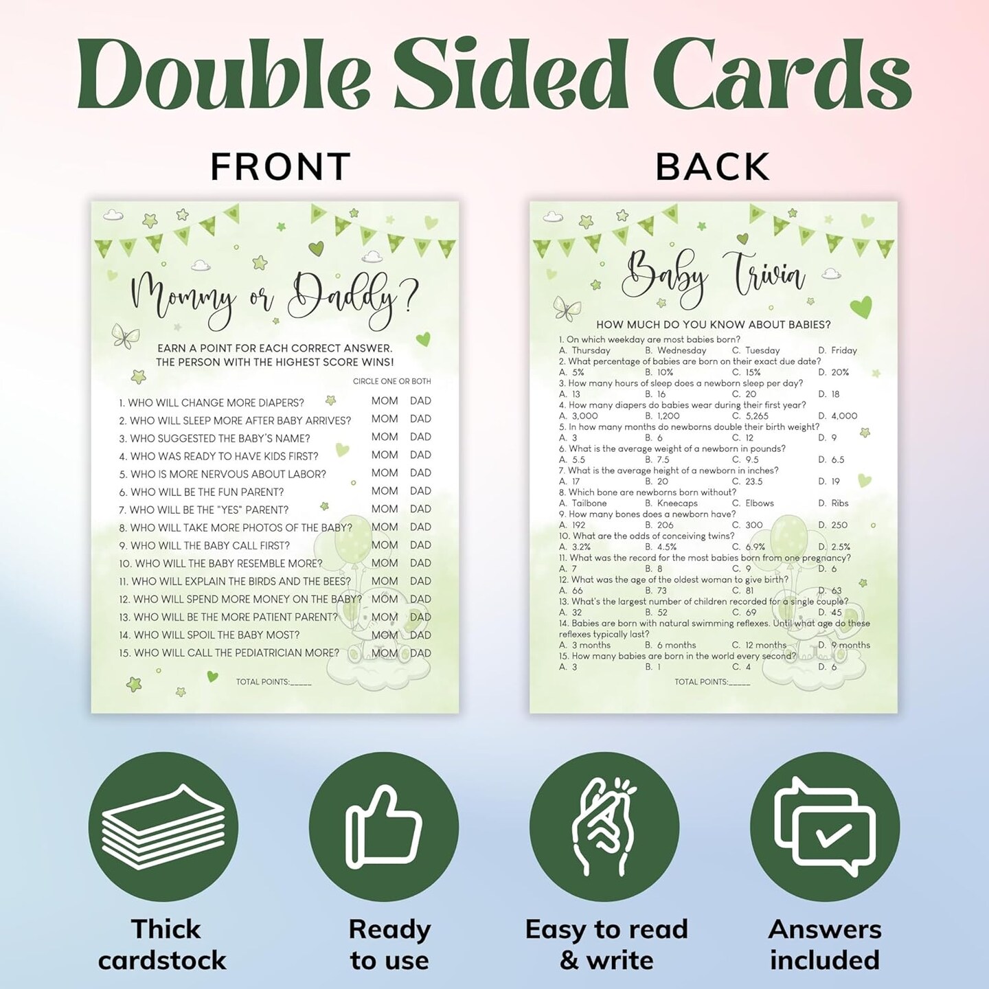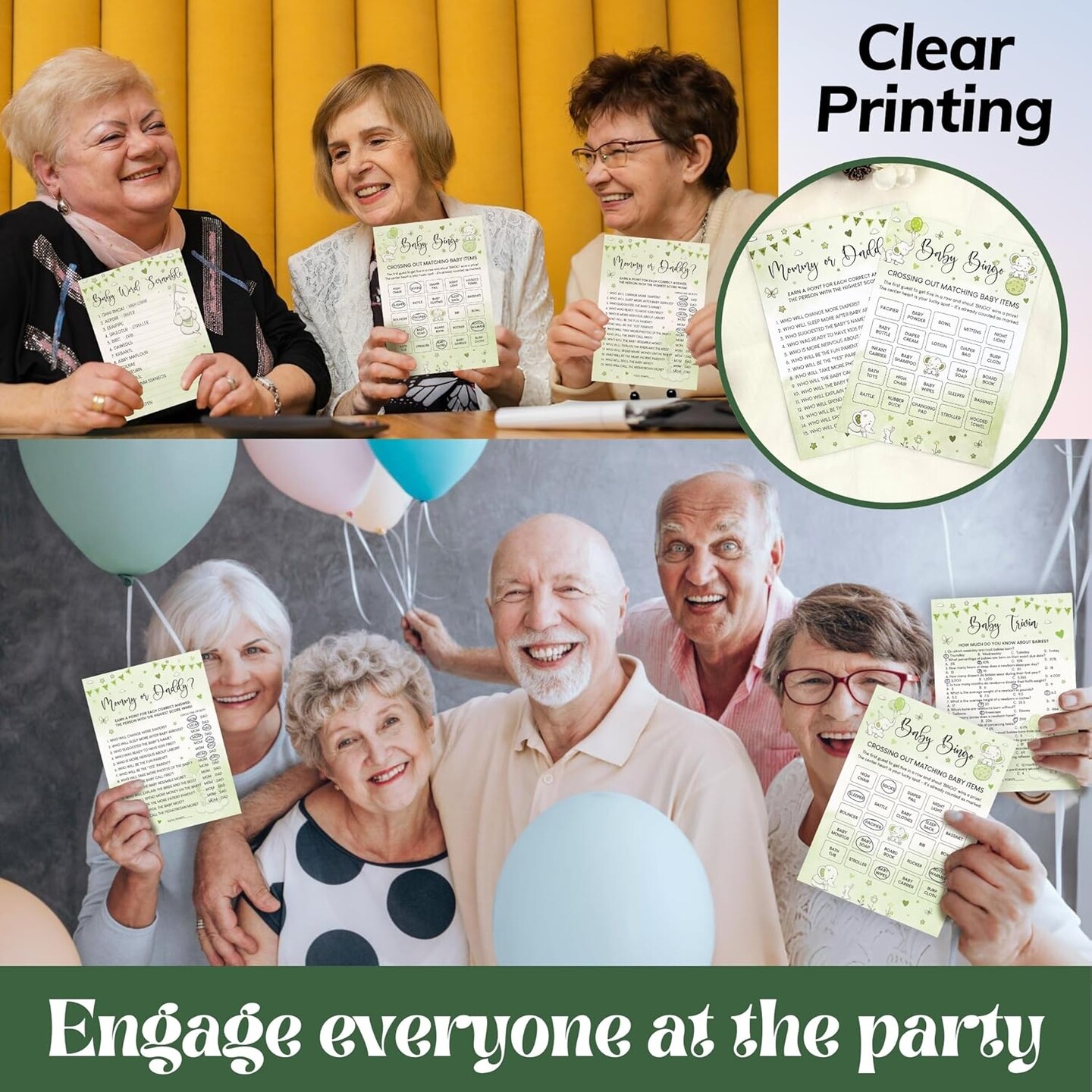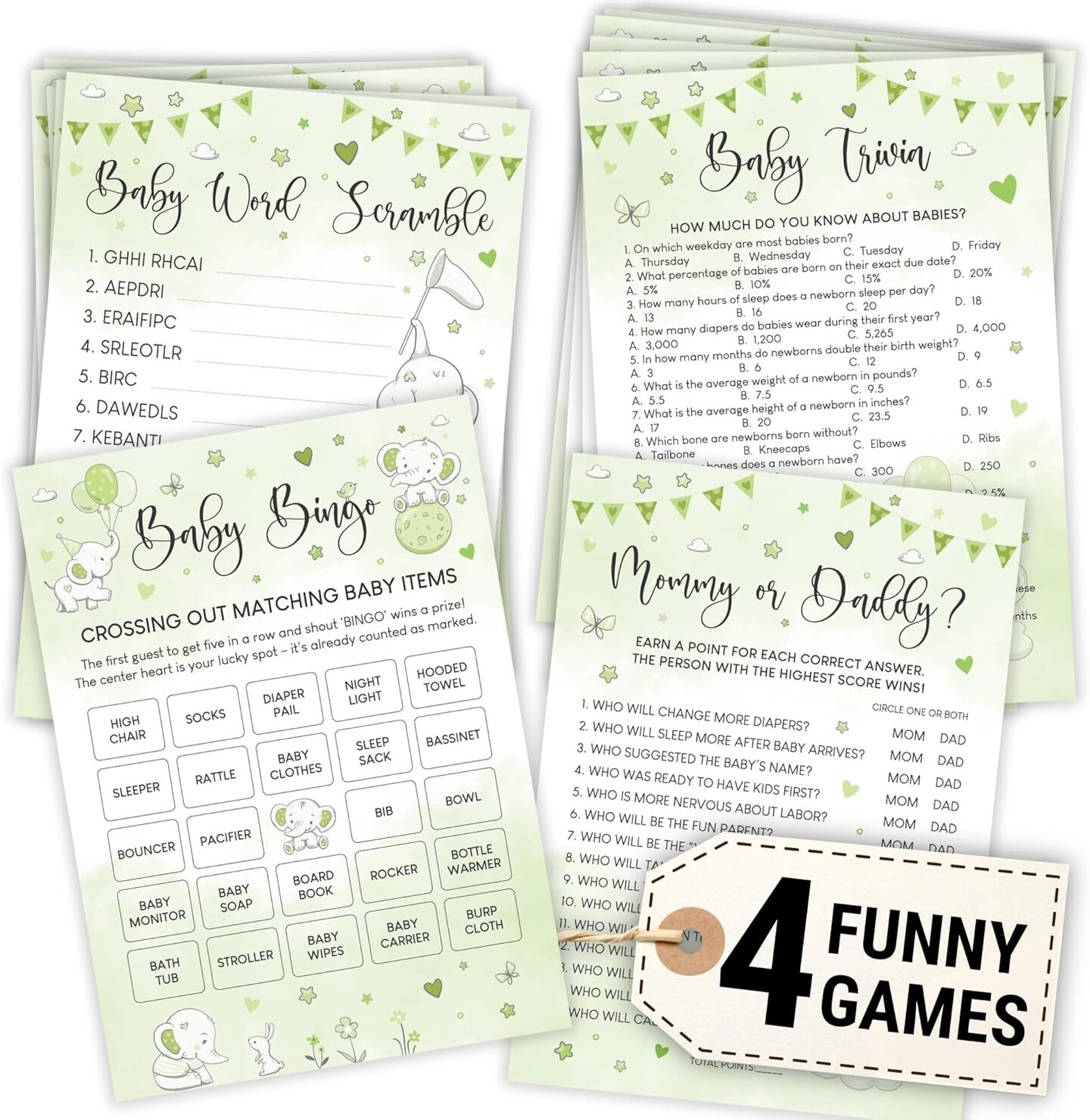 Elephant Baby Shower Games for Boy Girl - Set Of 4 Funny Baby Games For Baby Shower Party