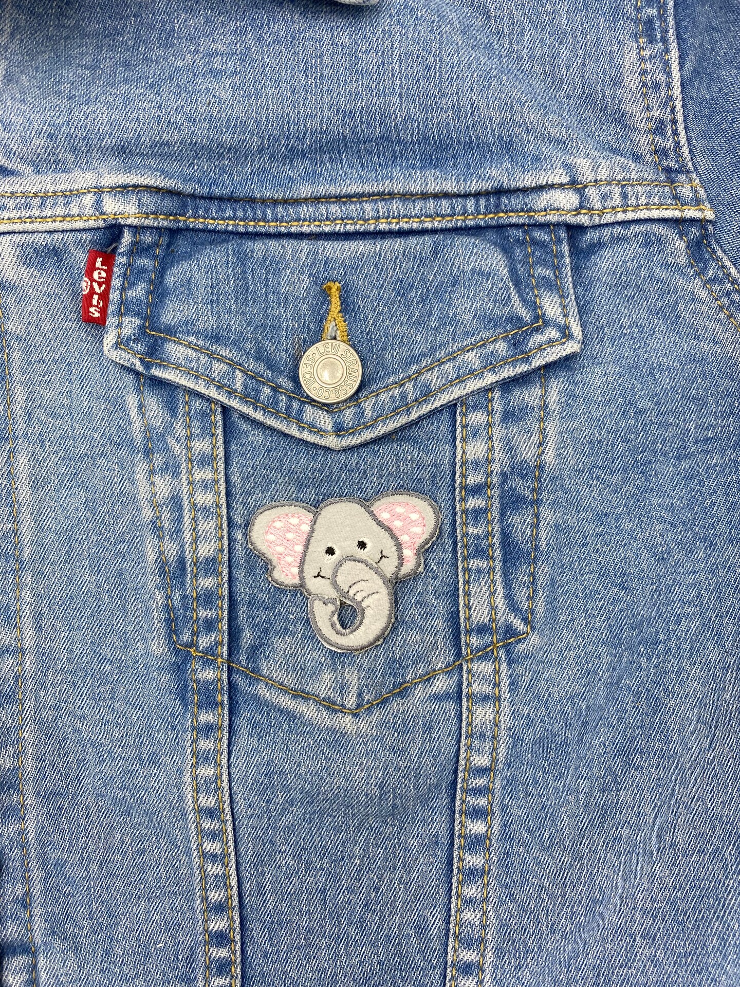 Elephant with 3D Trunk, Head, Embroidered, Iron on Patch