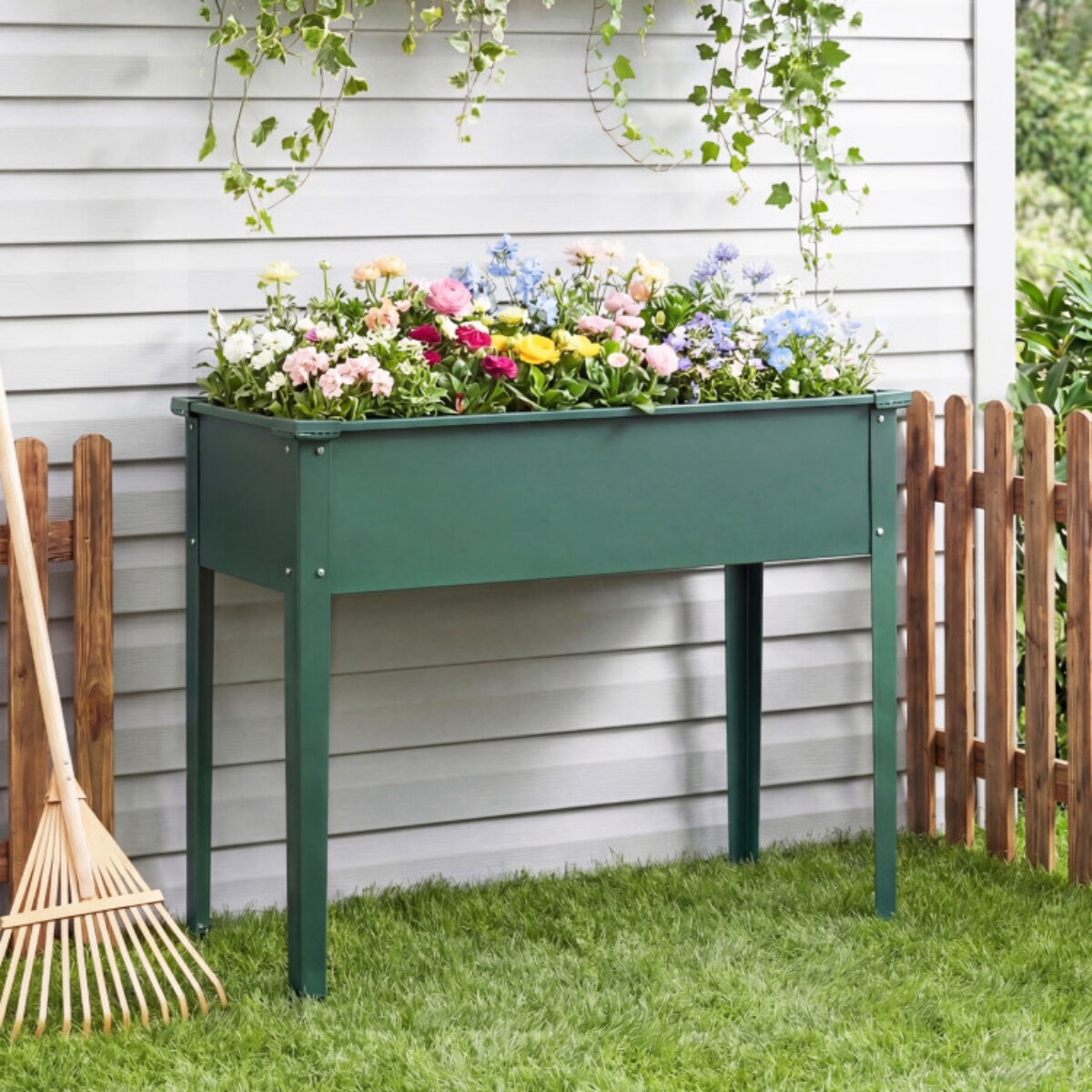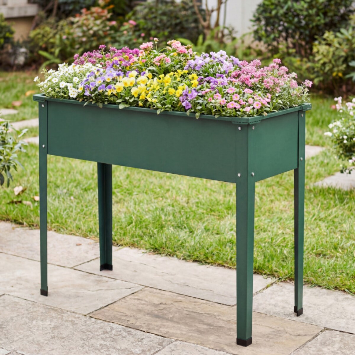 Elevated Metal Raised Garden Bed with Legs and Drainage Holes-Green