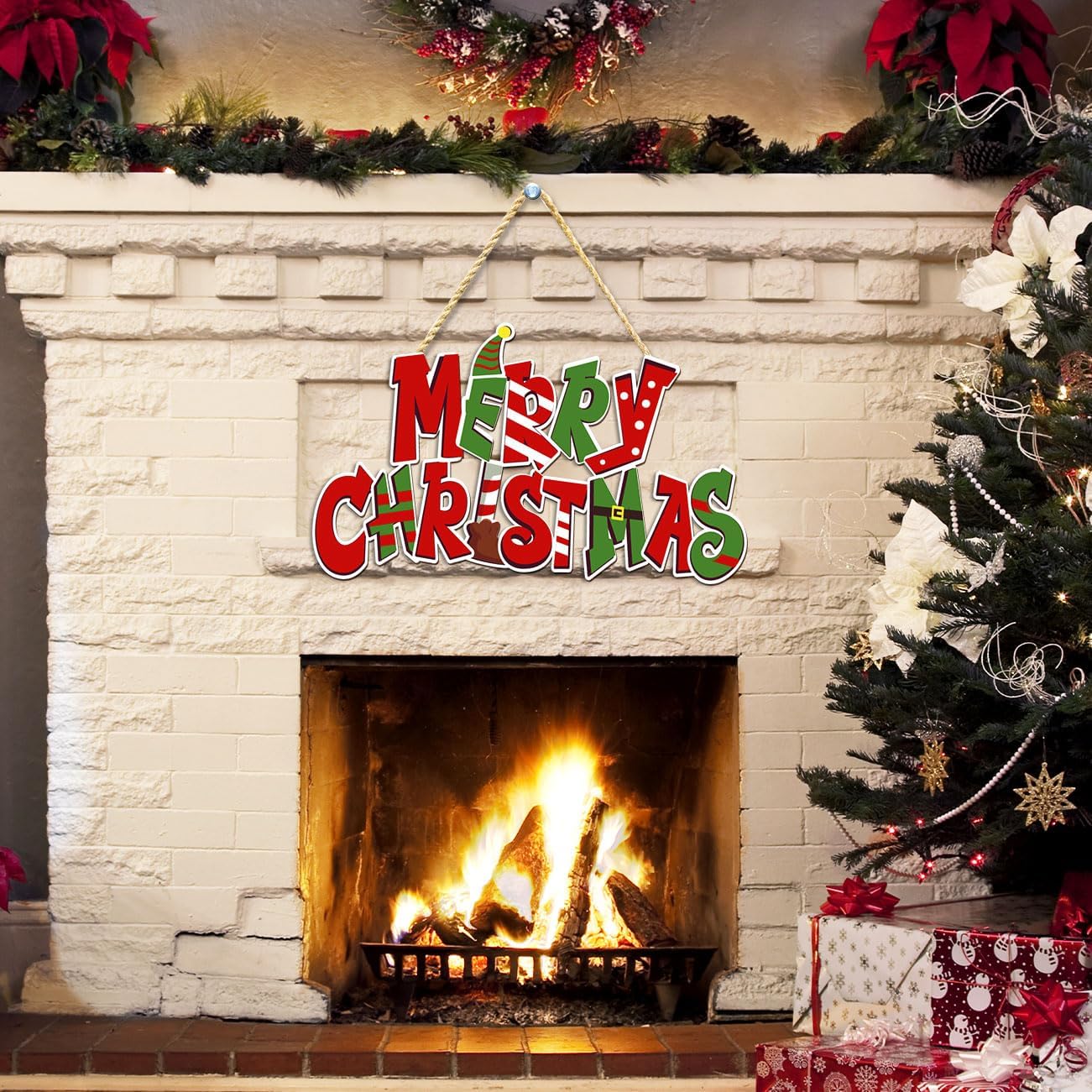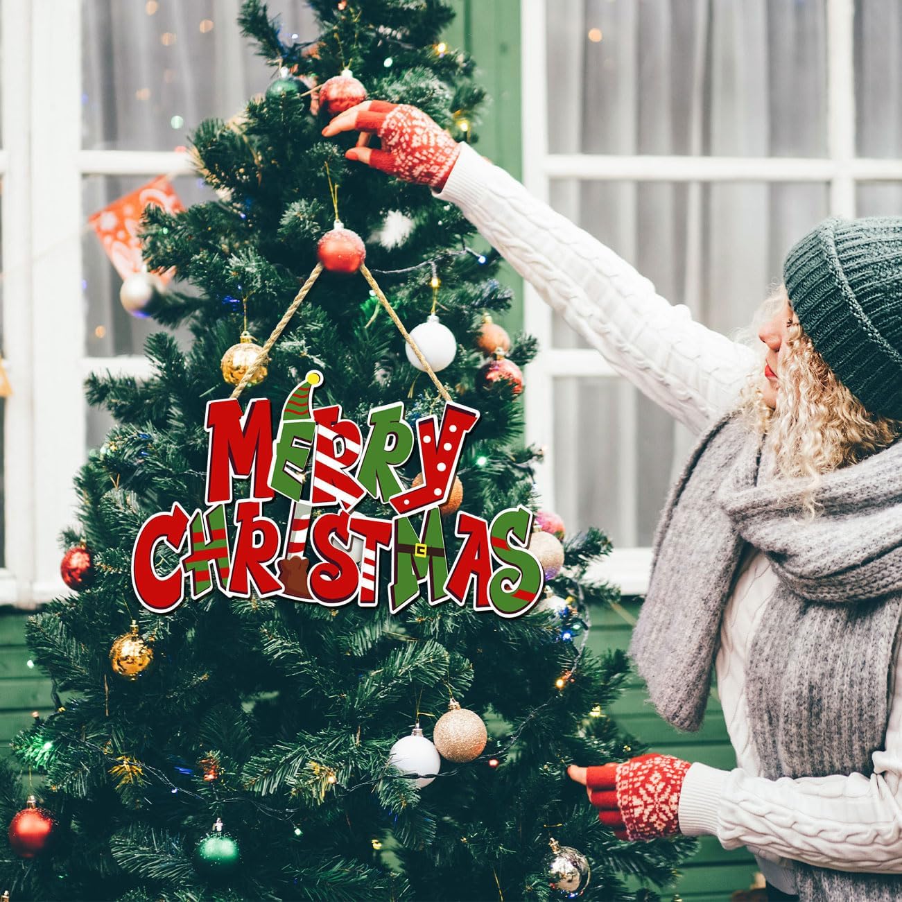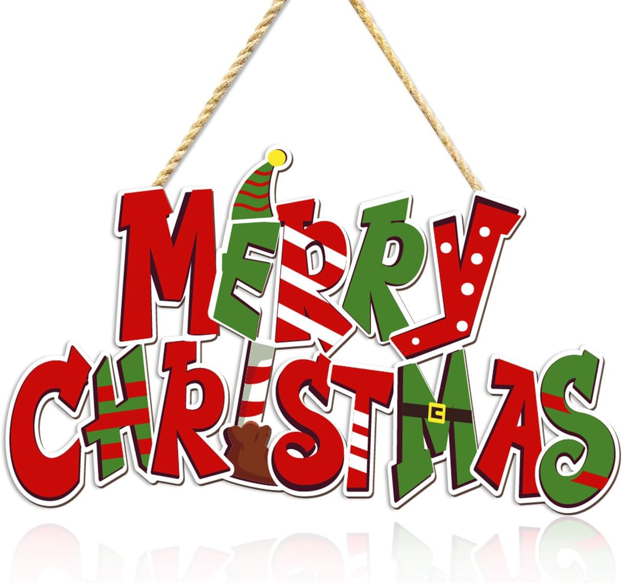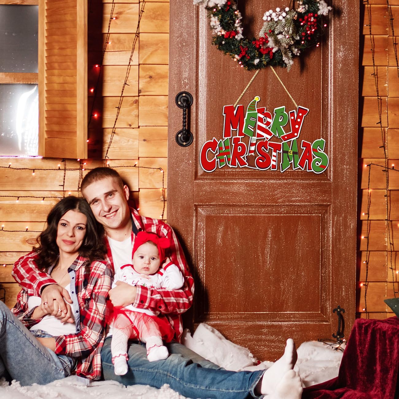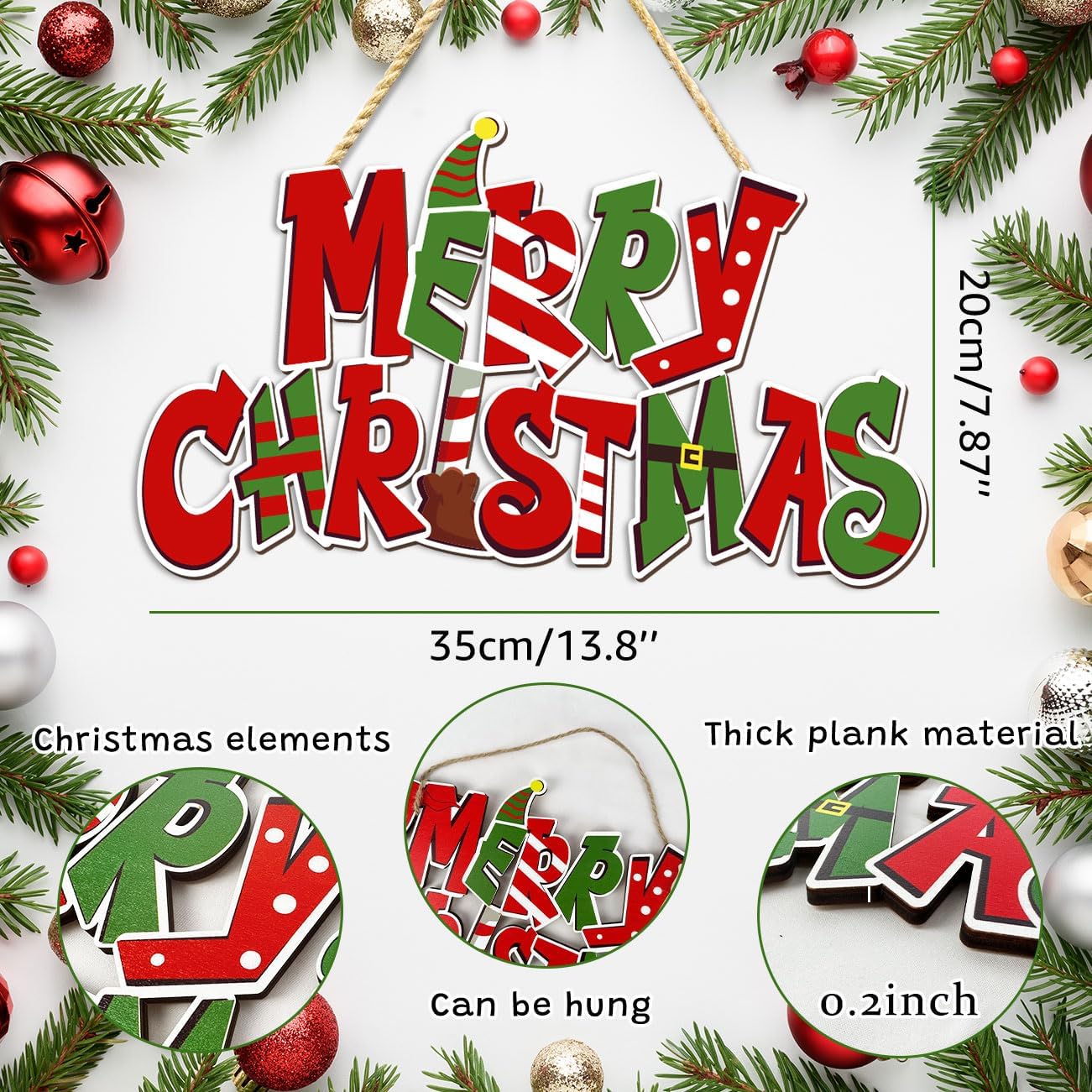 Elf Christmas Door Hanging Decoration Merry Christmas Wooden Sign Buddy The Elf Xmas Sign Photo Props for Indoor Outdoor Wall Decor Holiday Winter Party Supplies