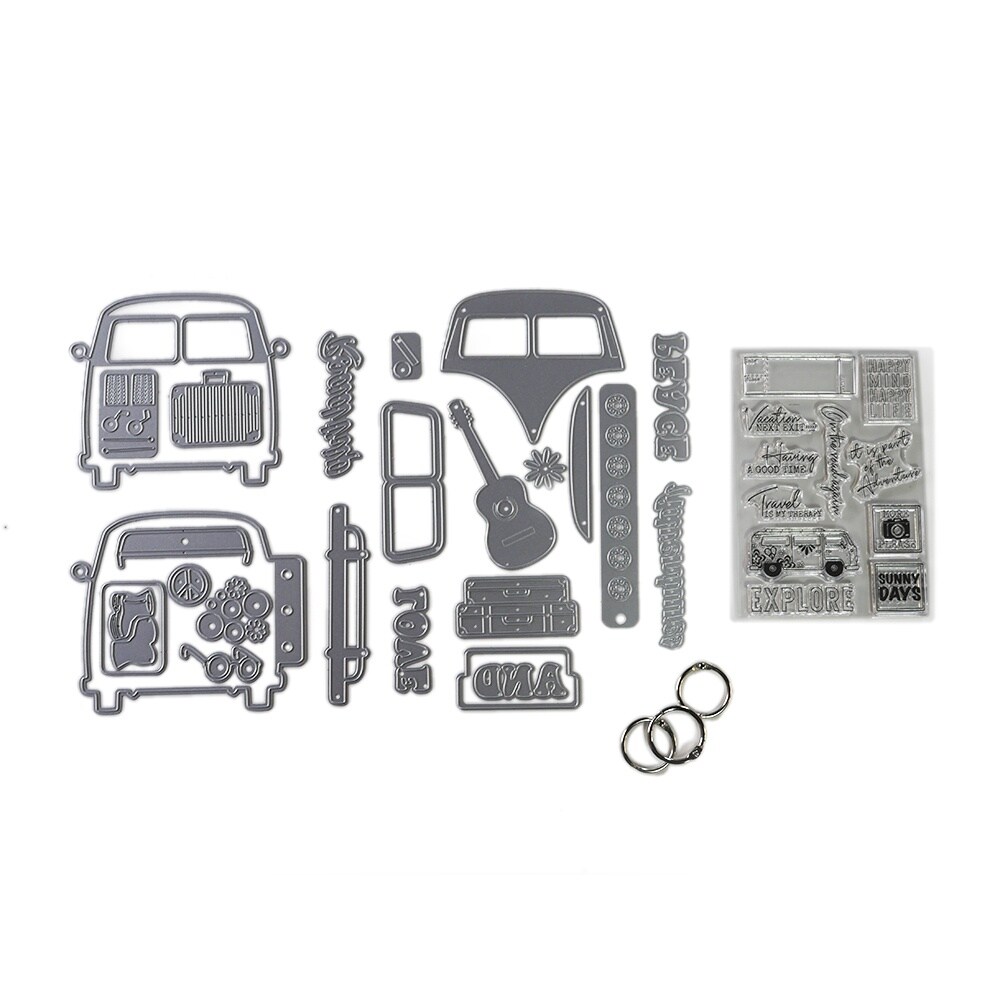 Elizabeth Craft Metal Die & Stamp Kit-Retro Bus