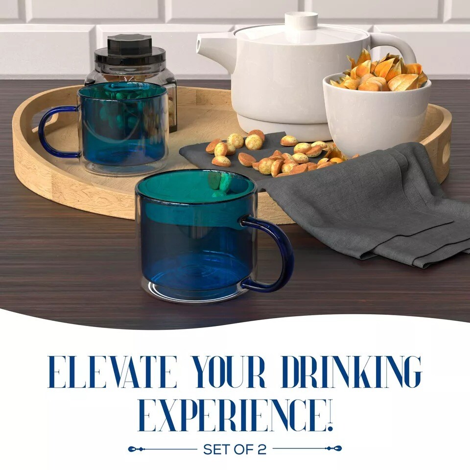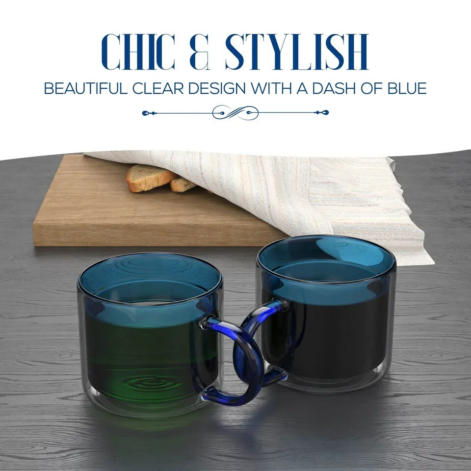 Elle Decor Double Wall Coffee Cups | Set of 2 | 10-Ounce-Blue