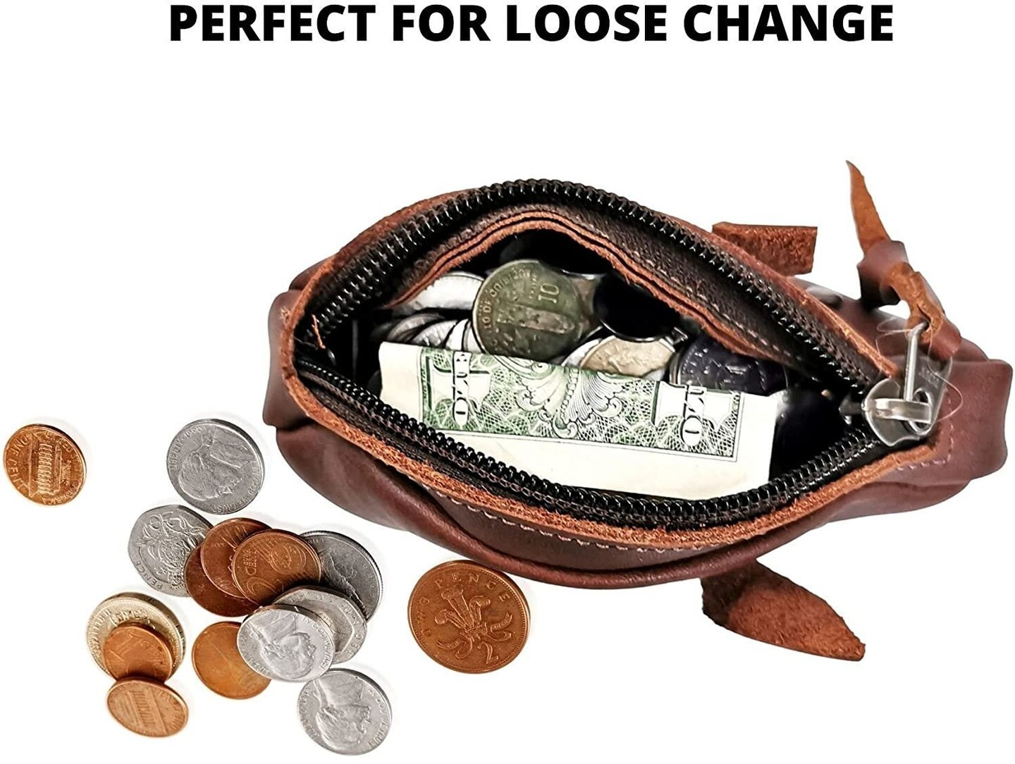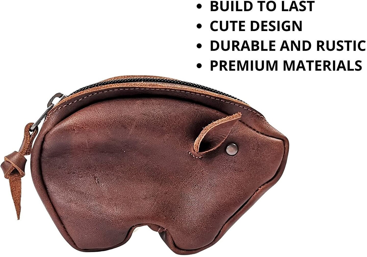 ELW Pig Coin Purse, Genuine Handmade Full Grain Leather Women and Girls Cute Fashion Coin Purse Wallet Bag Change Pouch Key Holder, Handmade with Rustic Cute Design, Perfect gift, Change Pouch Wallet