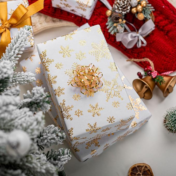 Embossed Gold Foil Snowflakes for Christmas, Winter Holiday, Party, New Year Celebration- 17in x 33ft