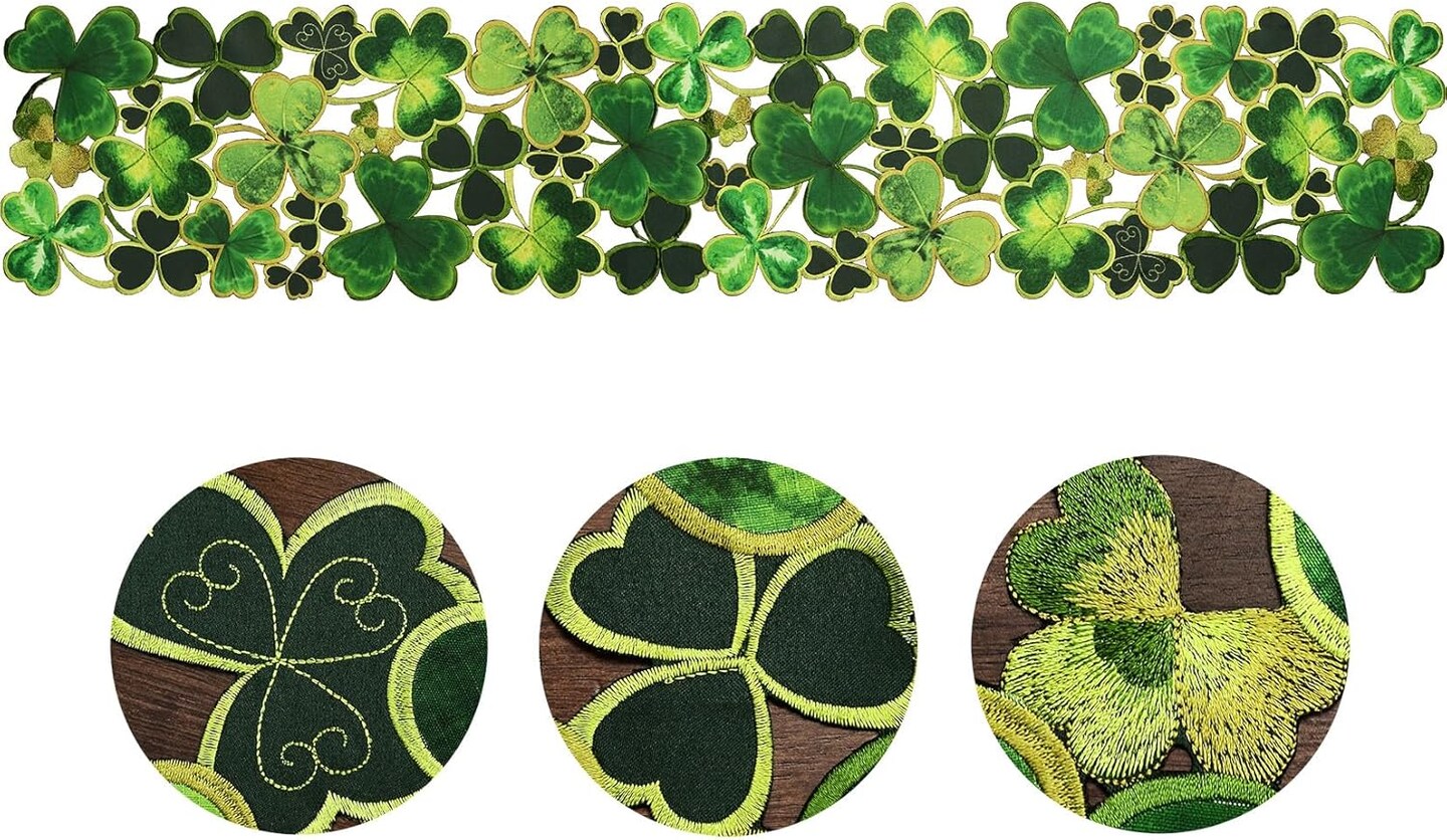 Embroidered Decorative Clover Table Runner for St. Patrick's Day (13x90 inches)
