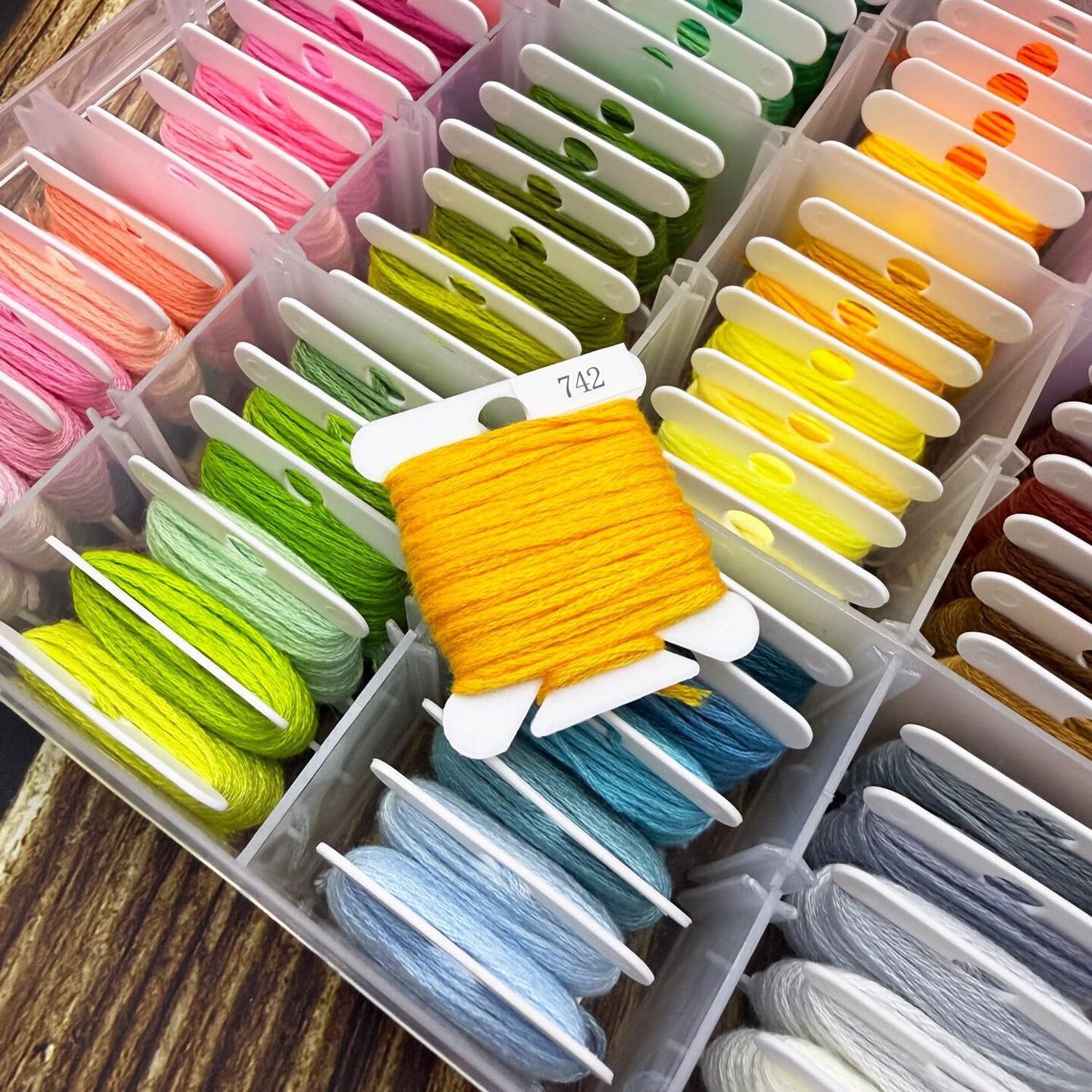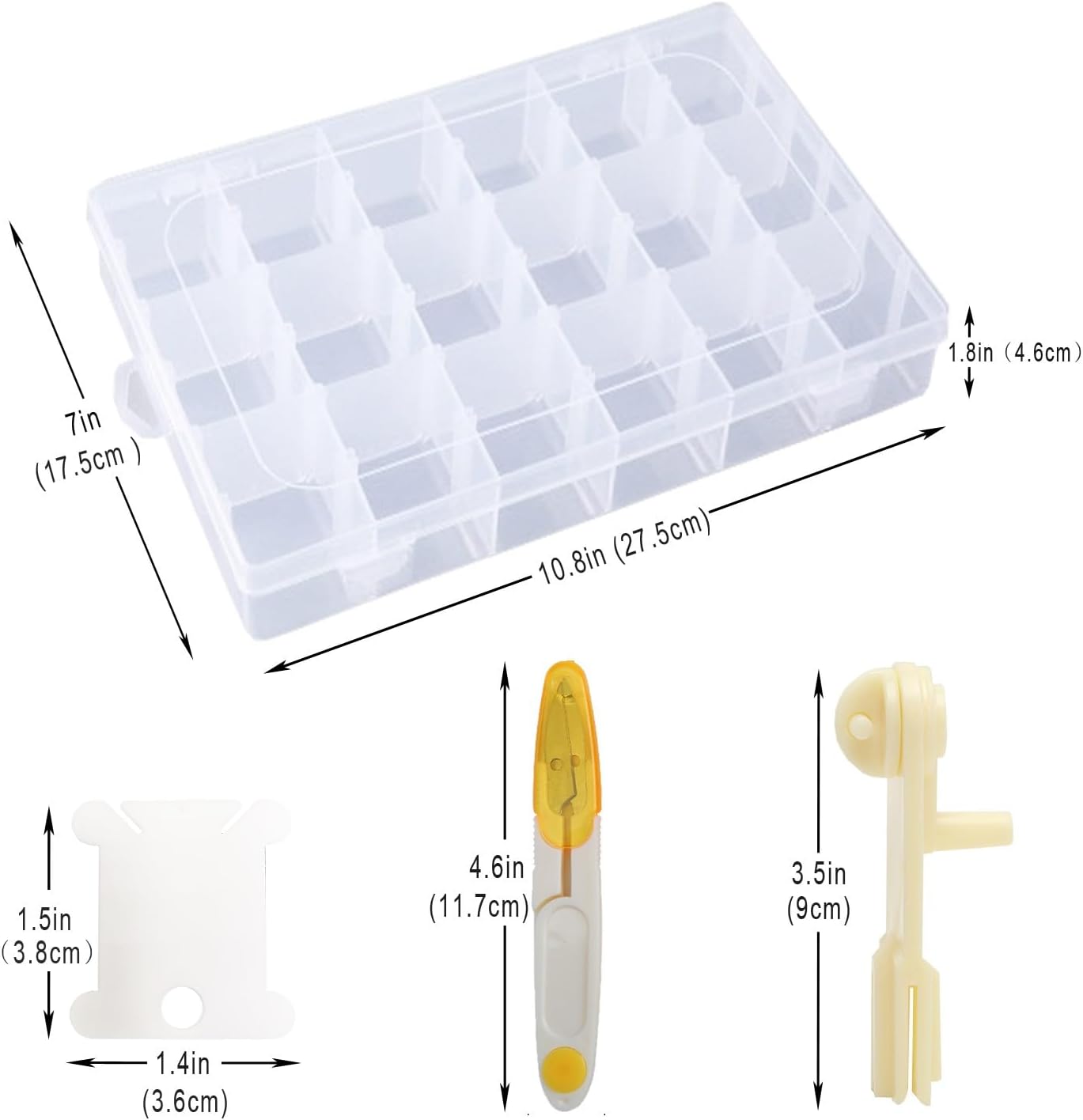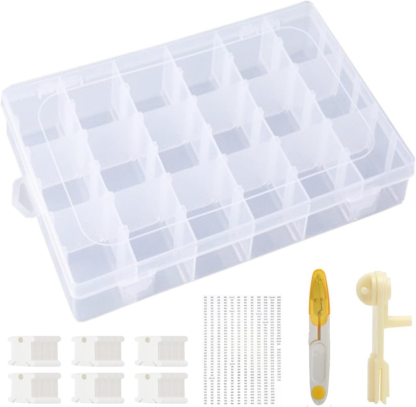 Embroidery Floss Organizer and Cross Stitch Thread Storage Box – Includes 120 Floss Bobbins, Bobbin Winder, Scissors, Color Stickers, and Removable 18-Compartment Large Case