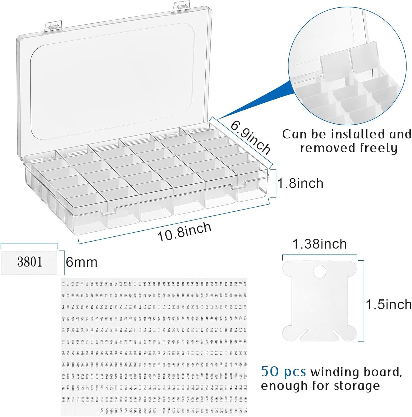 Embroidery Floss Organizer Box Set, Includes Compartments Cross Stitch Organizer Box, Plastic Floss Bobbins and 1790 Number Stickers for Thread Sewing, 4 Sets(36 Grids,100 Pcs)