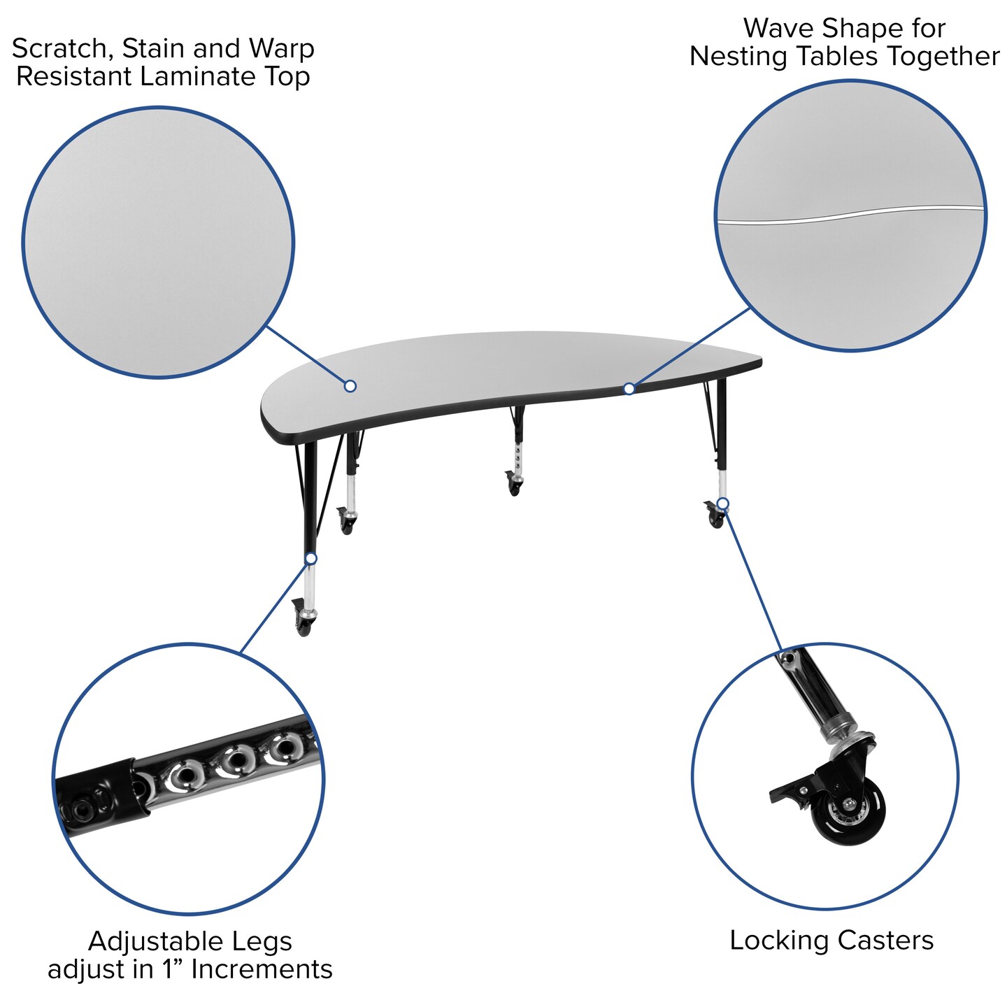 Emma and Oliver 2 Piece Mobile 60" Circle Collaborative Grey Kids Activity Table Set