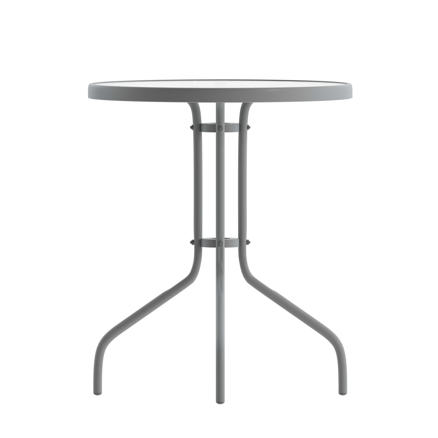 Emma and Oliver 23.75" Round Tempered Glass Metal Table with Smooth Ripple Design Top