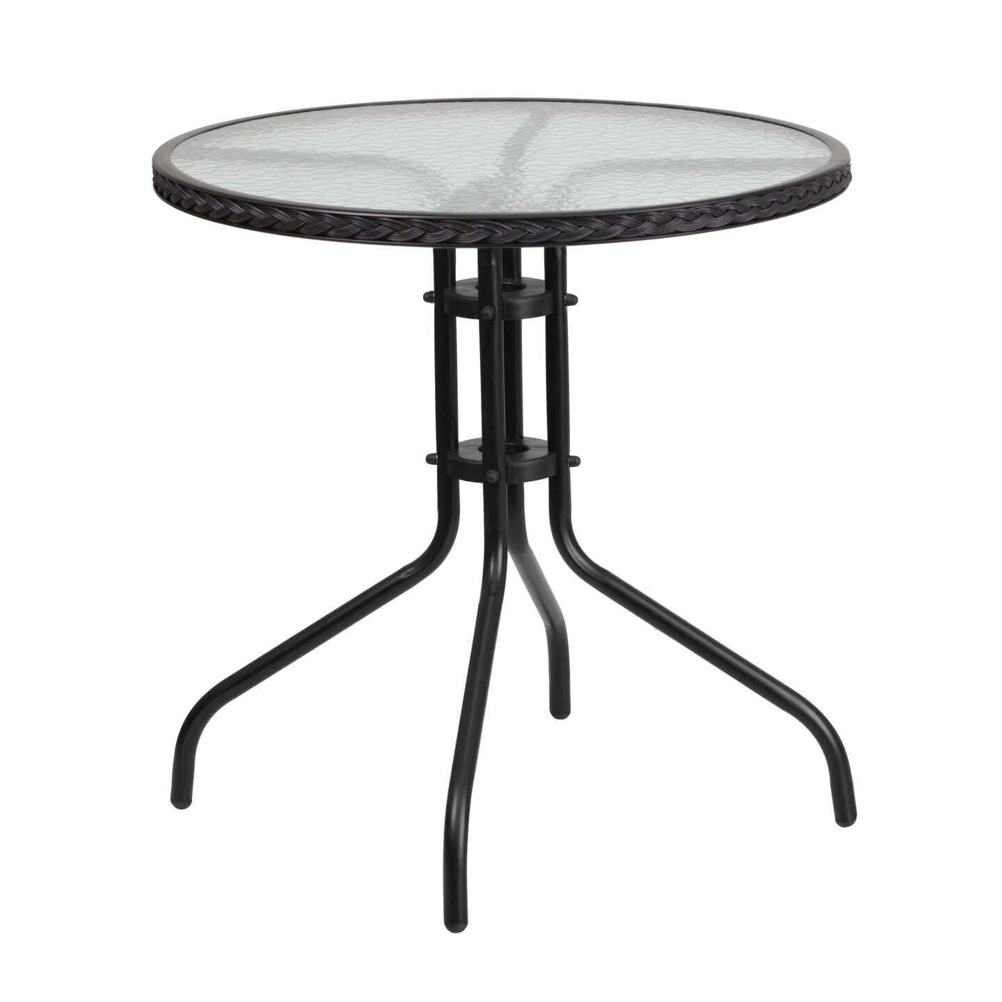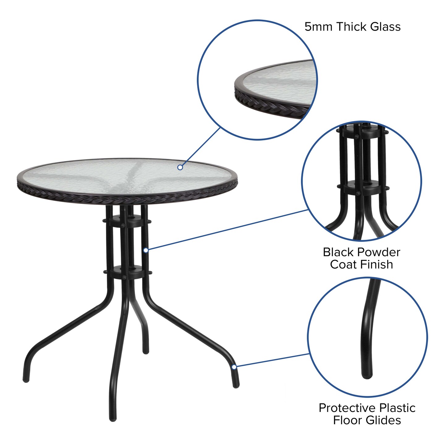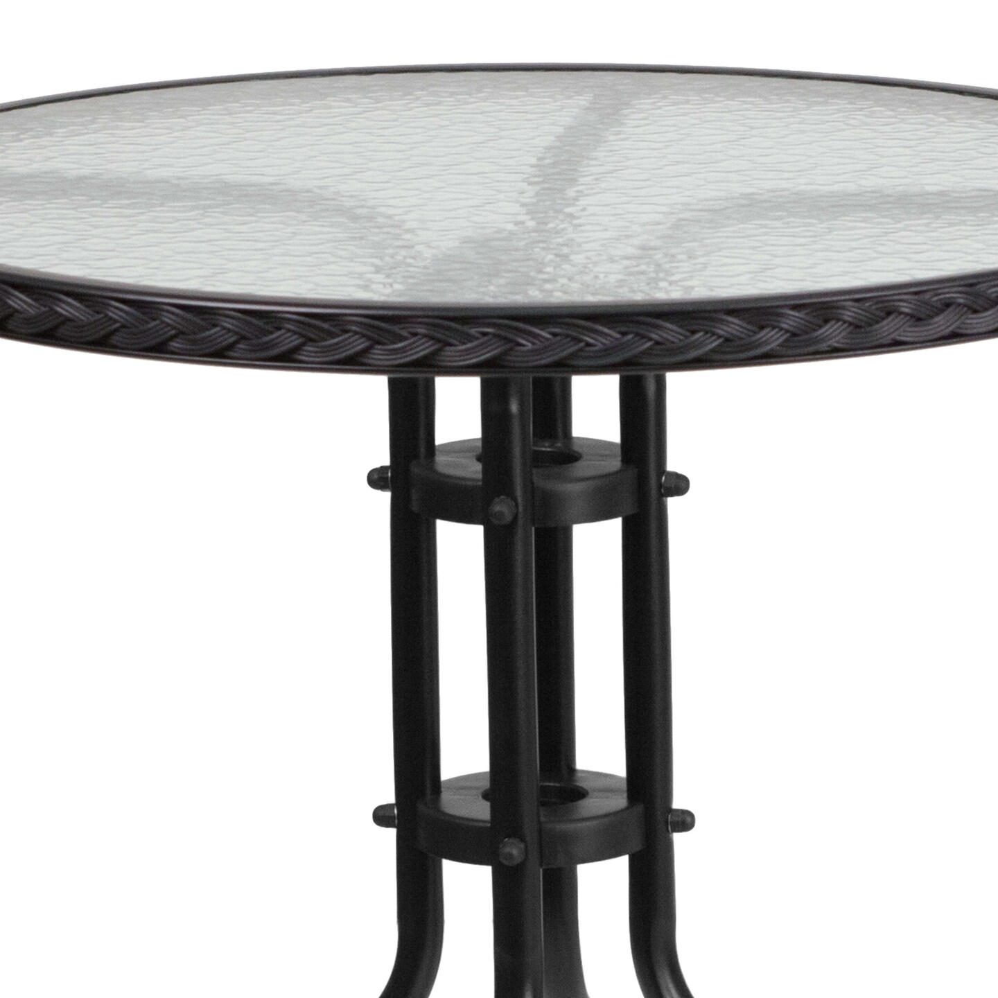 Emma and Oliver 28" Round Tempered Glass Metal Table with Rattan Edging