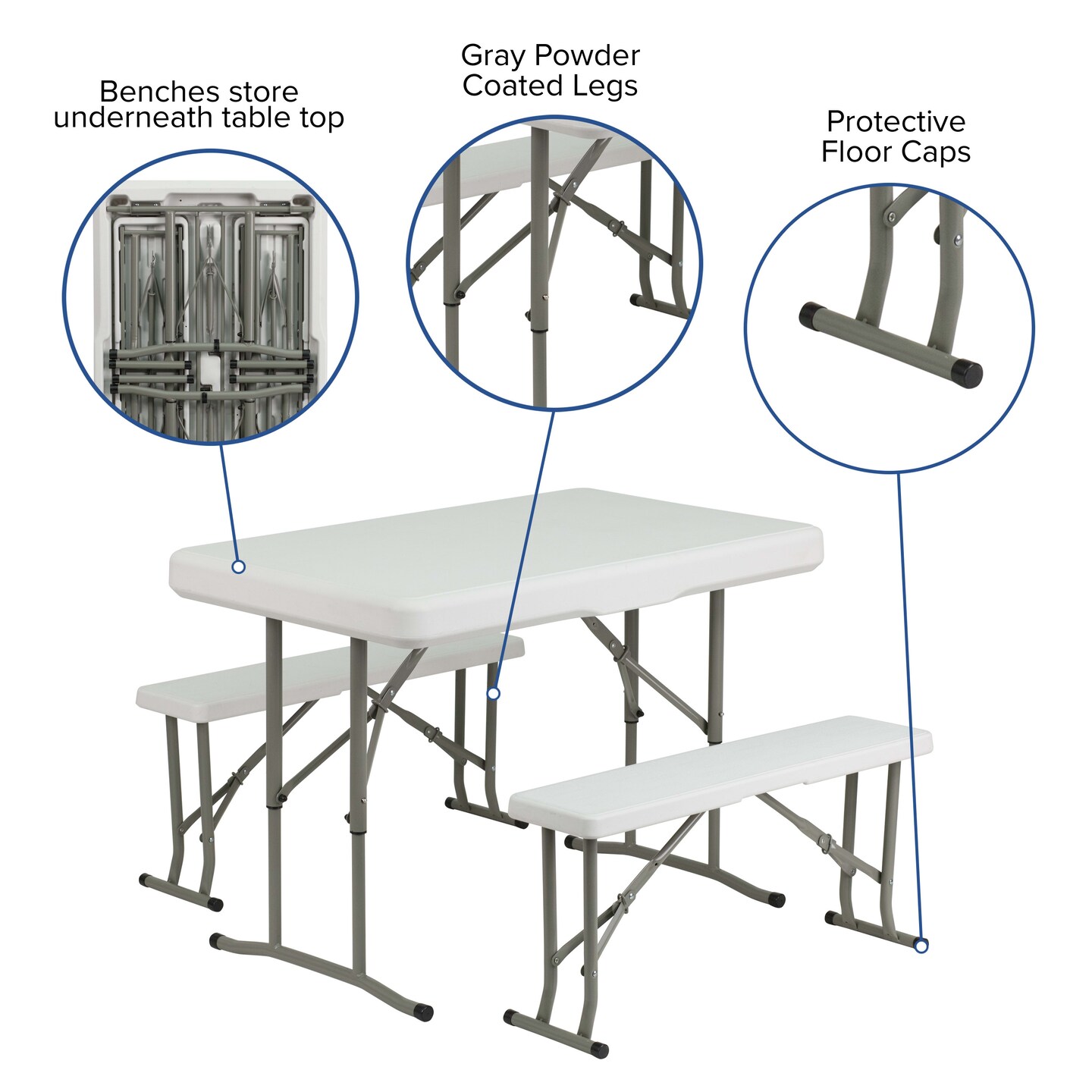 Emma and Oliver 3 Piece Portable Plastic Folding Bench and Table Set