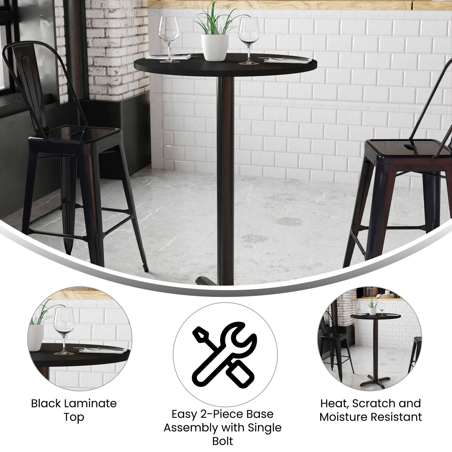 Emma and Oliver 30" Round Laminate Table Top with 22"x22" Bar Height Table Base