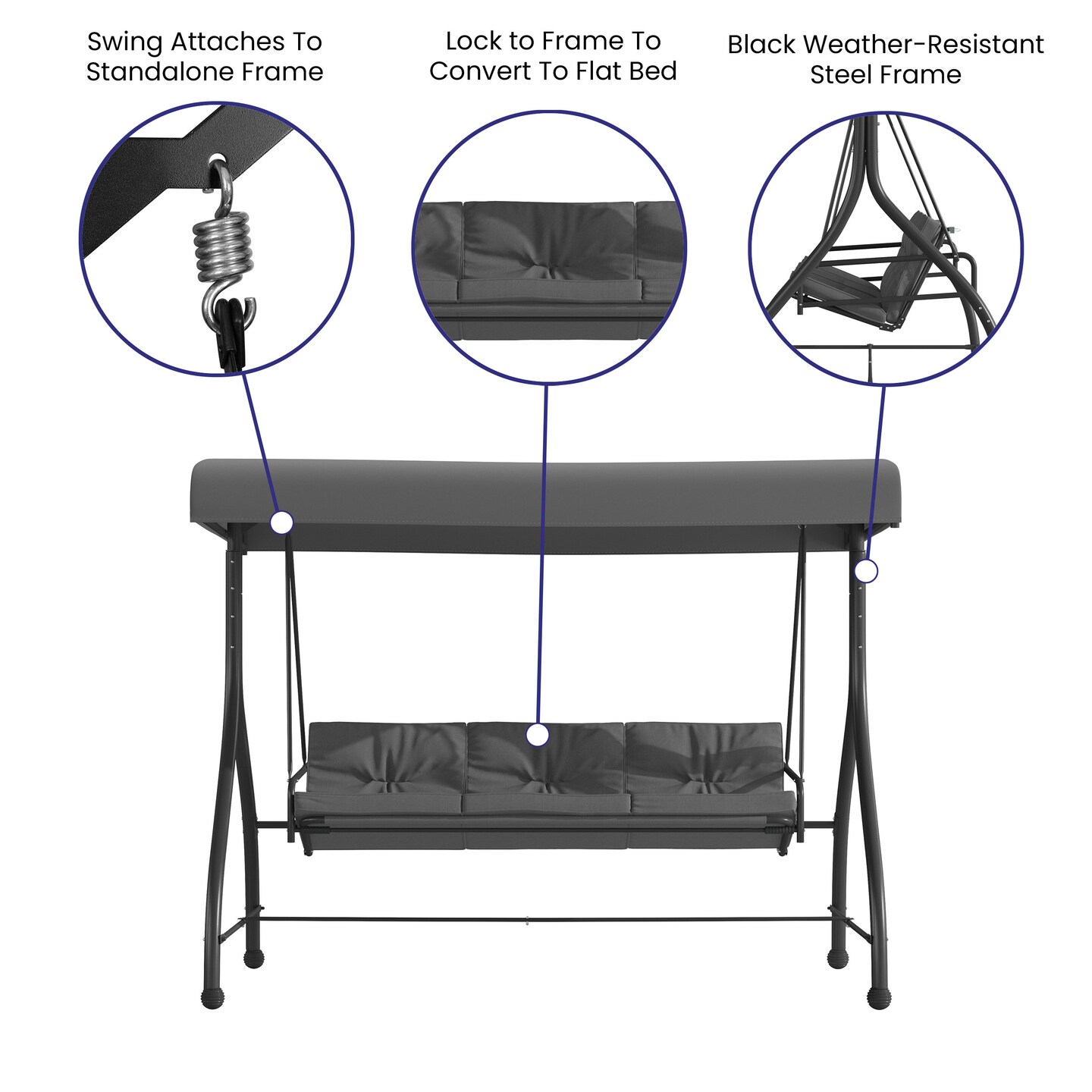 Emma and Oliver 3-Seat Outdoor Steel Converting Patio Swing and Bed Canopy Hammock