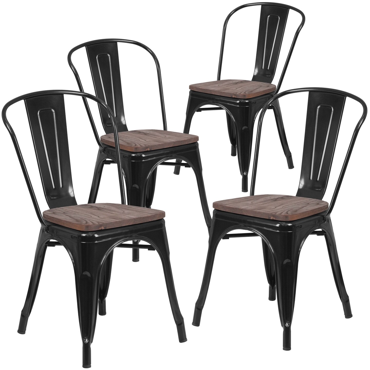 Emma and Oliver 4 Pack Metal Stackable Chair with Wood Seat