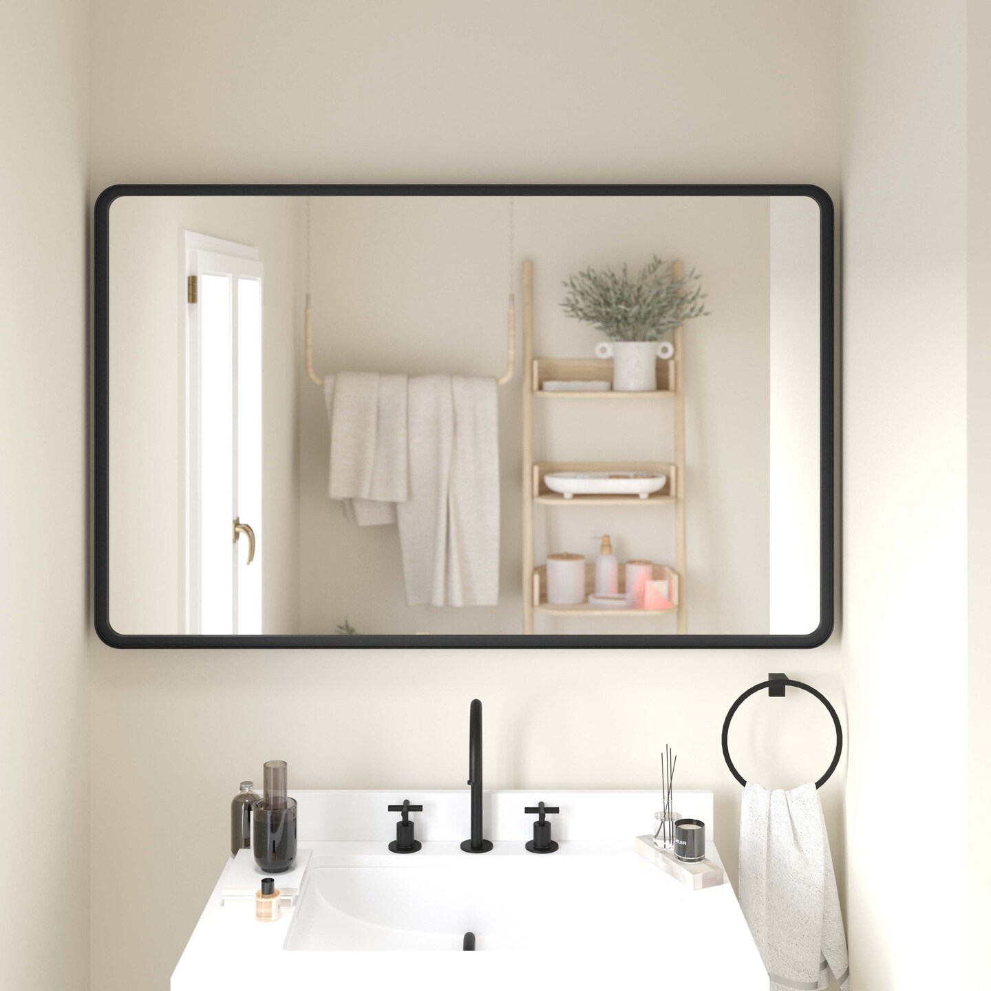 Emma and Oliver Afsin Wall Mirror with Silver Backed Glass for Clarity for Entryways, Bathrooms & More