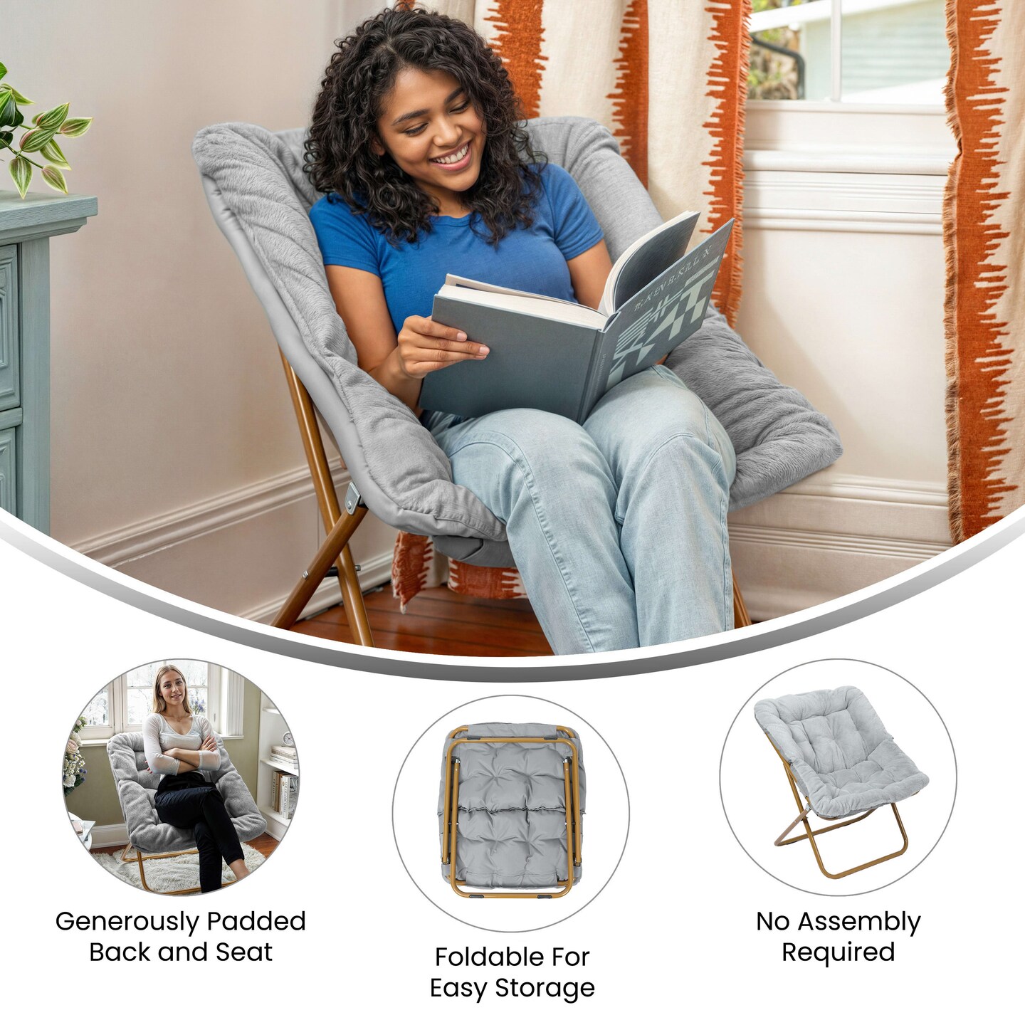 Emma and Oliver Aisling Oversized Folding Saucer Chair for Dorm, Bedroom