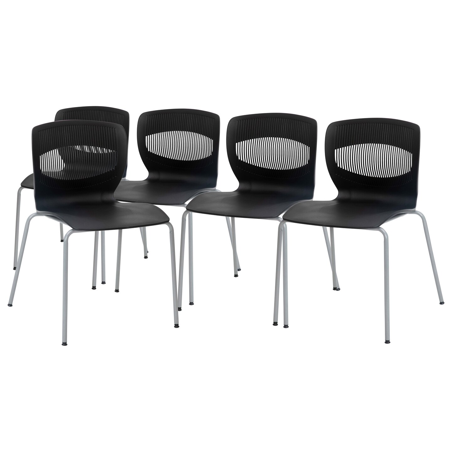 Emma and Oliver Arcana Series Set of 5 Heavy Duty 770 lb. Capacity Ergonomic Polypropylene Stack Chair with Lumbar Support and Steel Frame