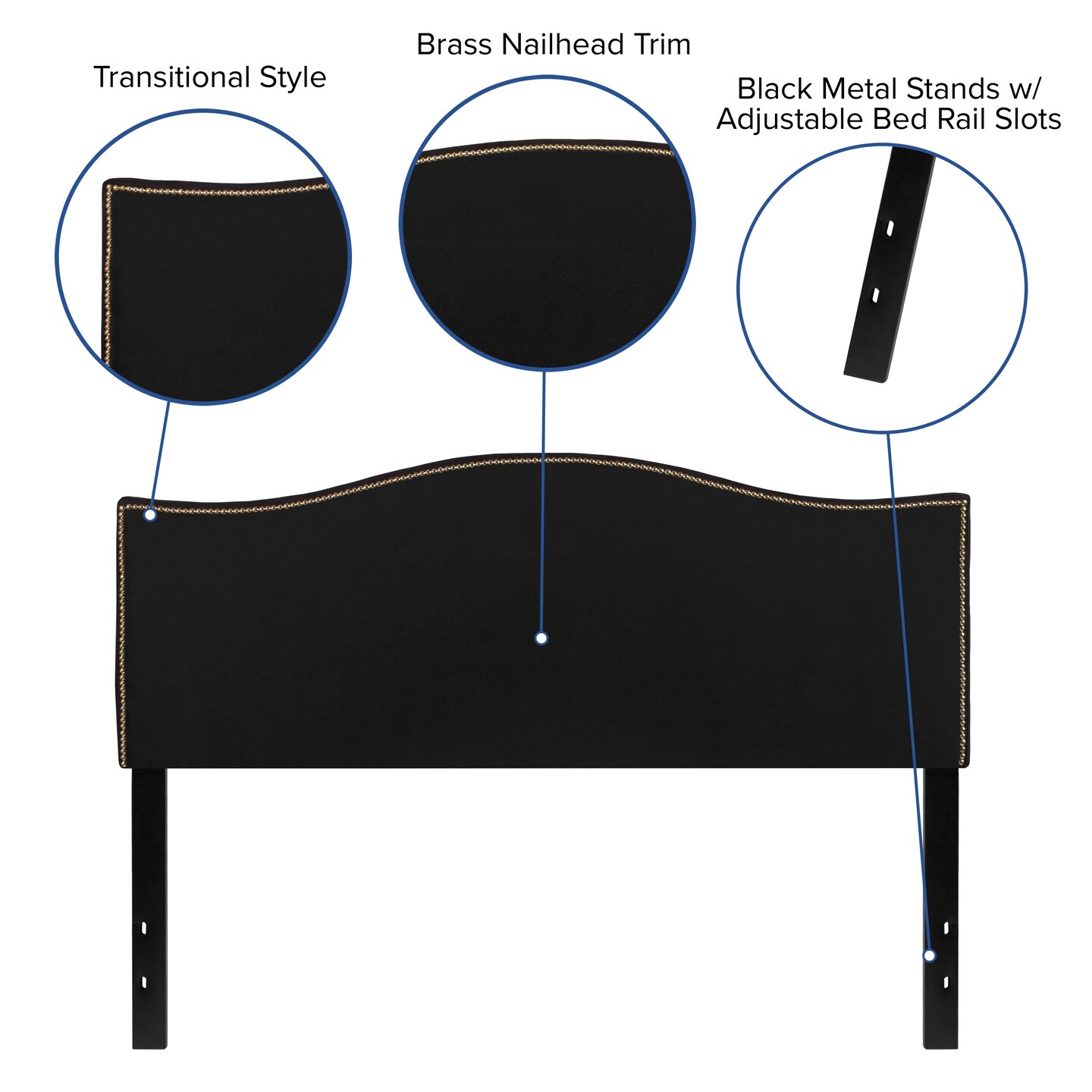 Emma and Oliver Arched Headboard with Accent Nail Trim