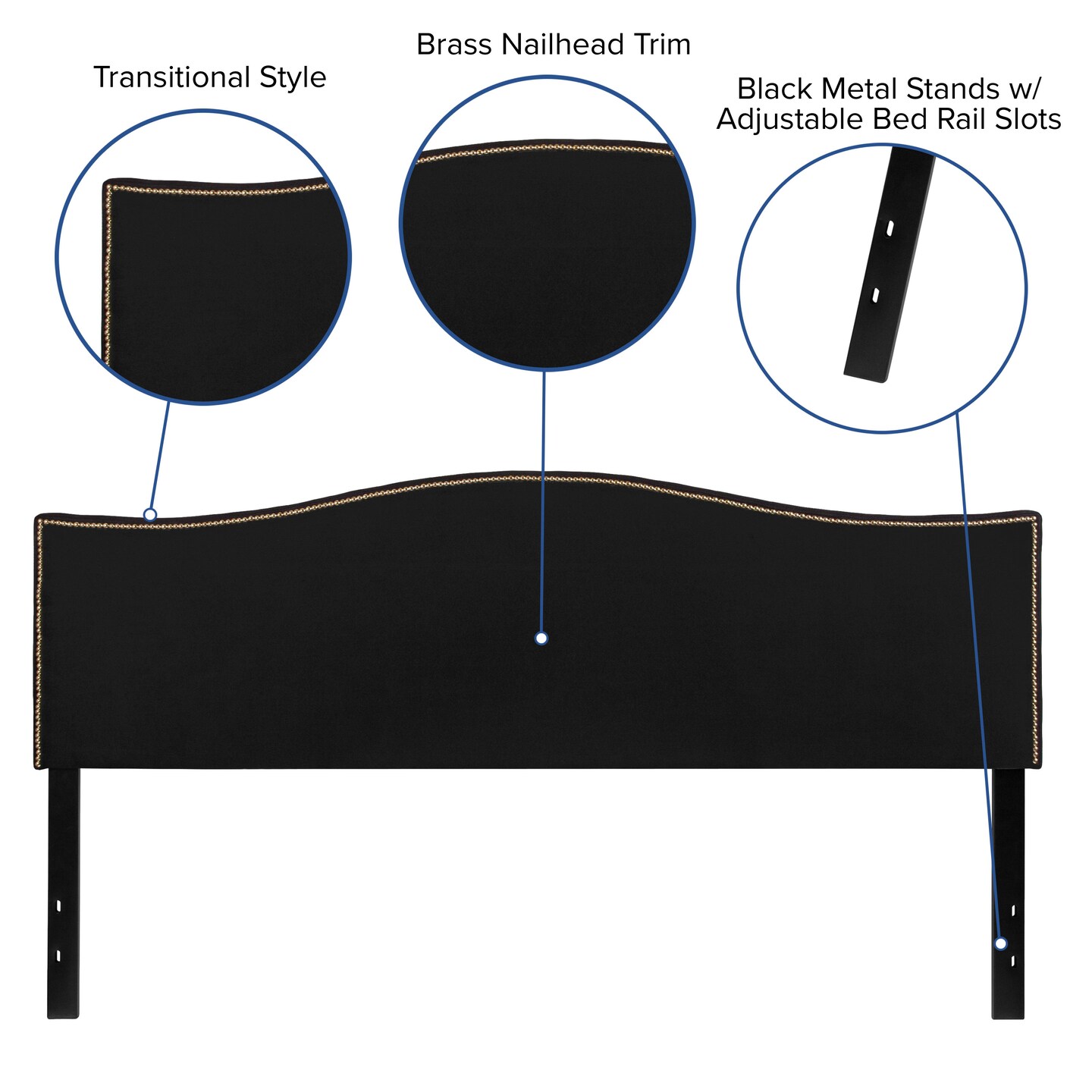 Emma and Oliver Arched Headboard with Accent Nail Trim