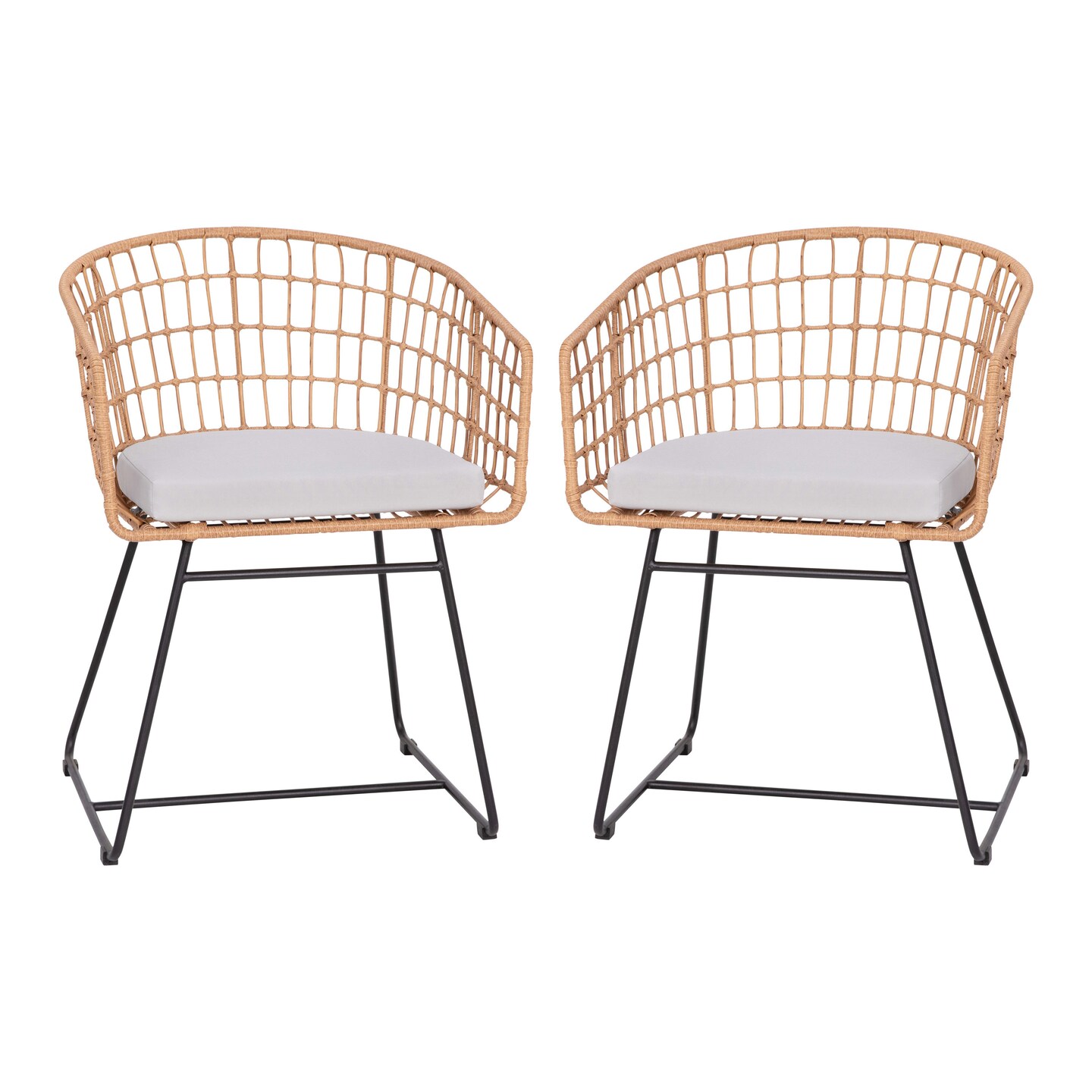 Emma and Oliver Ari Set of Two All-Weather Faux Rattan Rope Chairs with Padded Cushions for Indoor and Outdoor Use