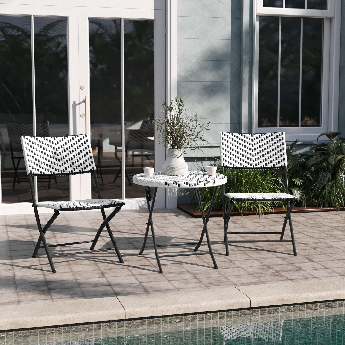 Emma and Oliver Ciel Three Piece Folding Bistro Set in PE Rattan with Metal Frames for Indoor and Outdoor Use