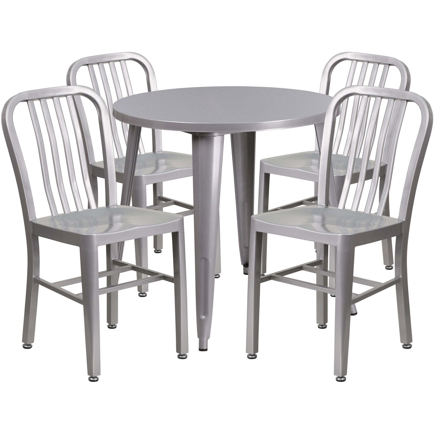 Emma and Oliver Commercial Grade 30" Round Metal Indoor-Outdoor Table Set & 4 Slat Back Chairs