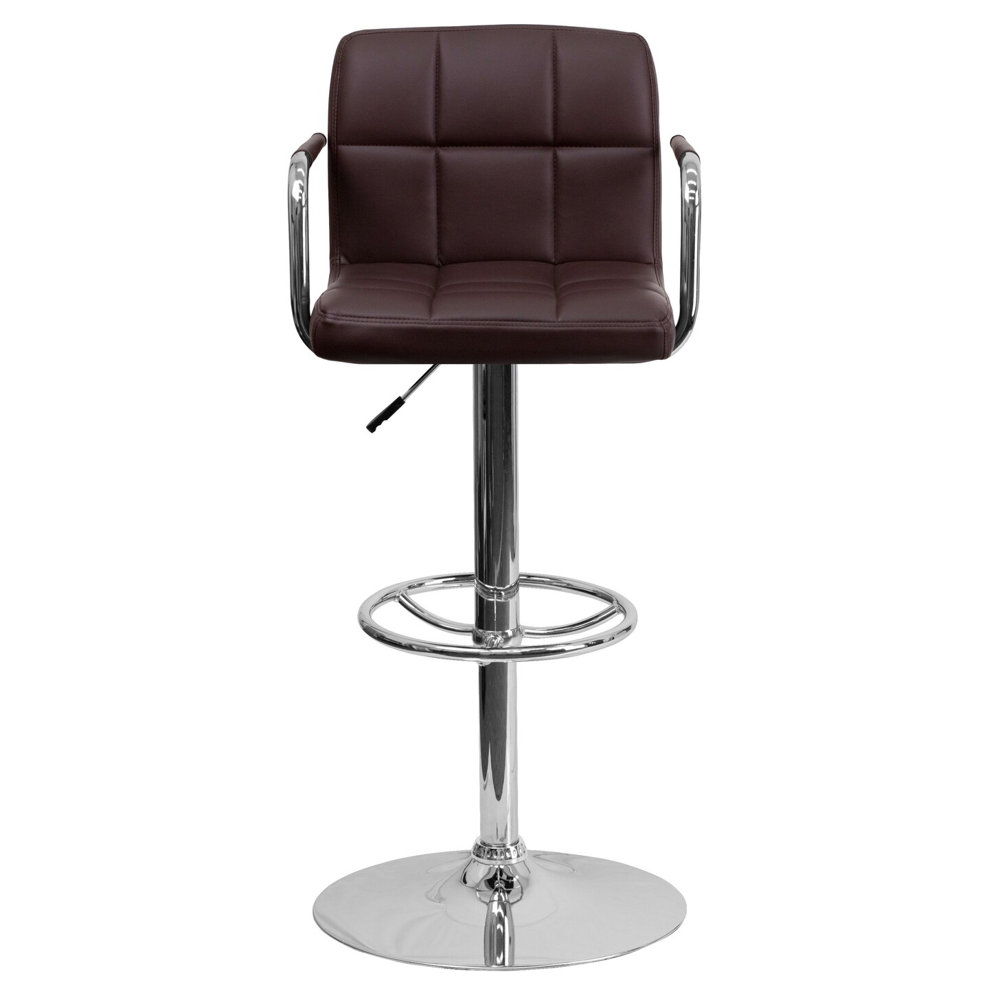 Emma and Oliver Contemporary Quilted Vinyl Adjustable Height Barstool with Arms