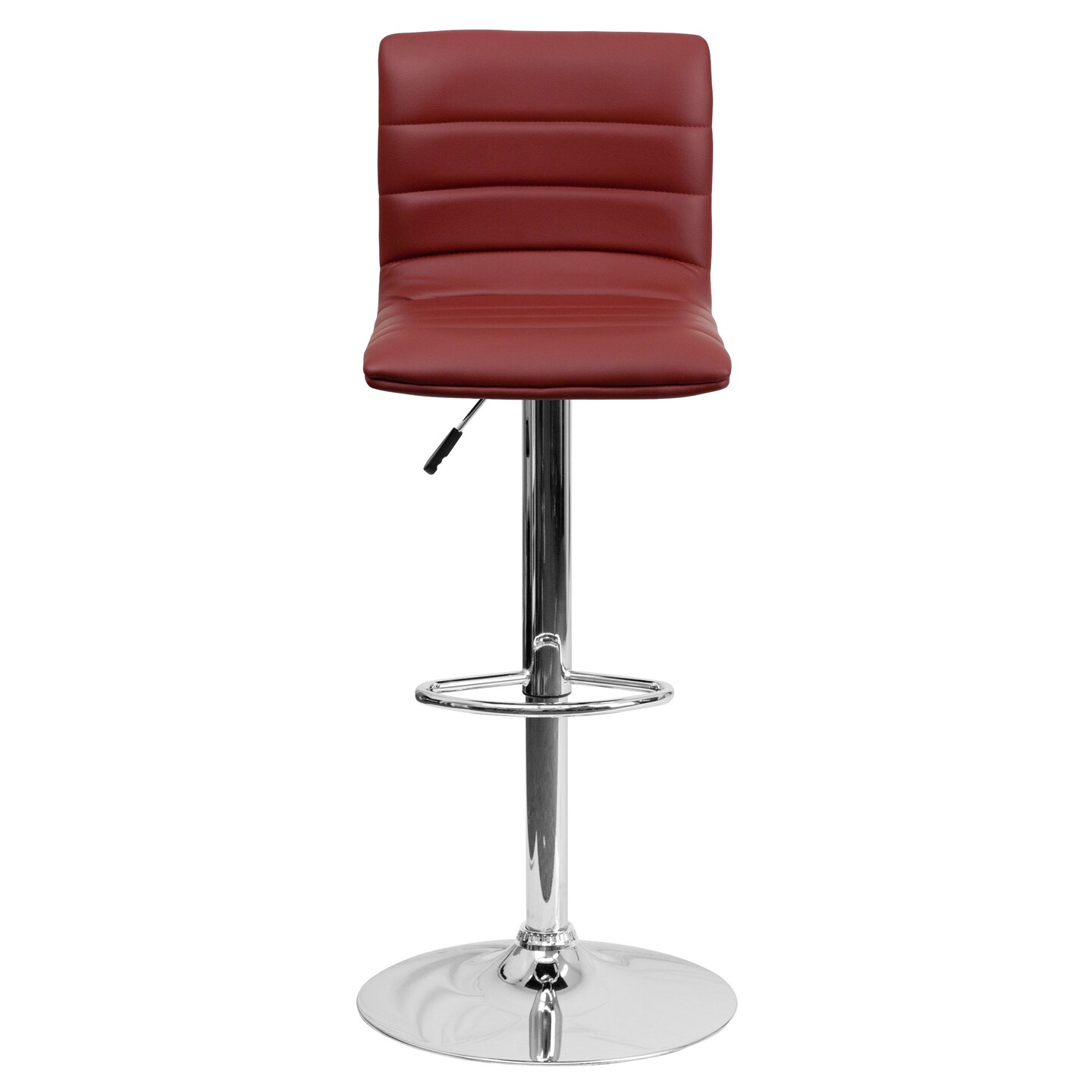 Emma and Oliver Coti Modern Channel Tufted Upholstered Height Adjustable Mid-Back Stool and Pedestal Base with Footrest