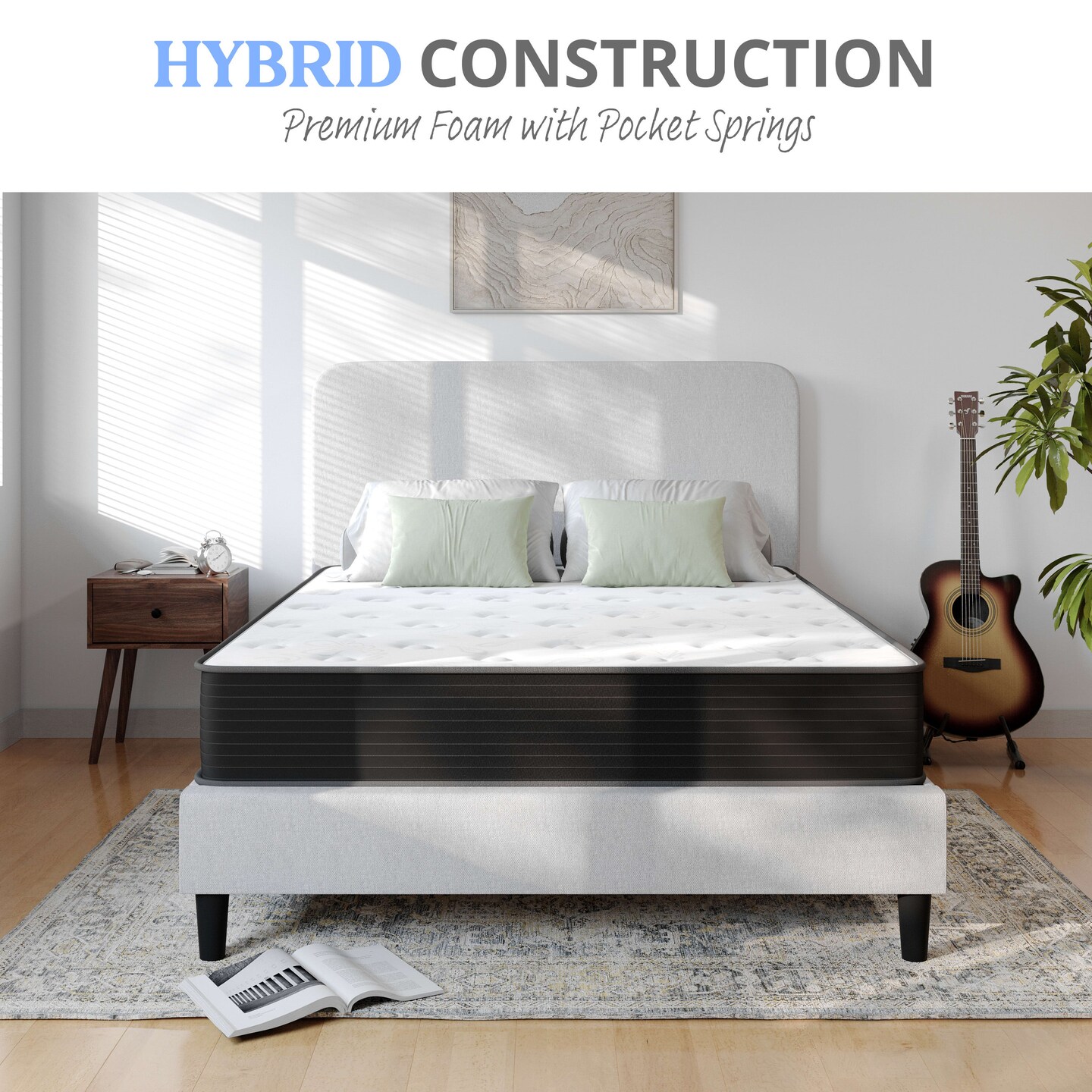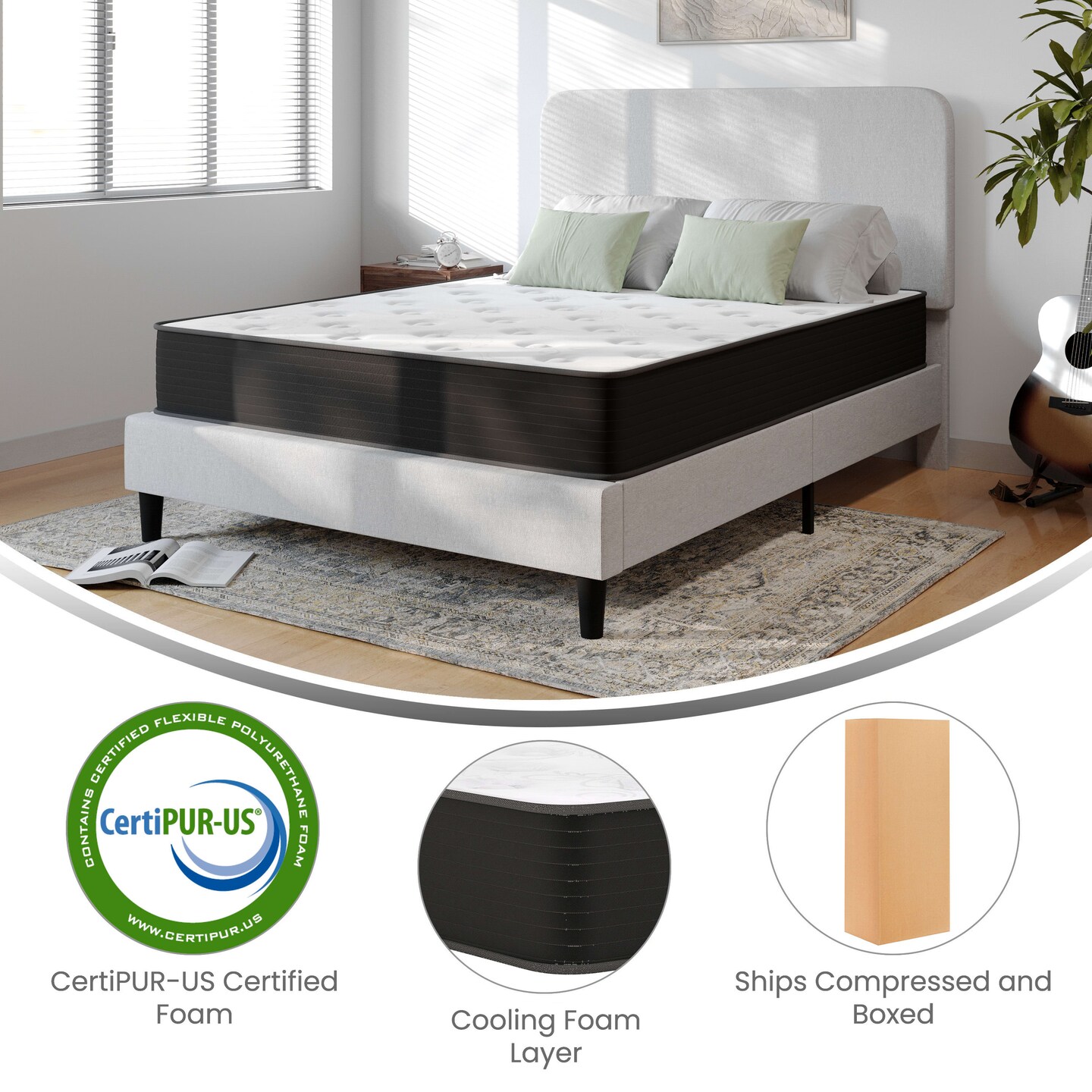 Emma and Oliver Drift 10 Inch Hybrid Mattress, High Density Cooling Foam and Pocket Spring Mattress in a Box, CertiPur-US Certified Foam, White/Black