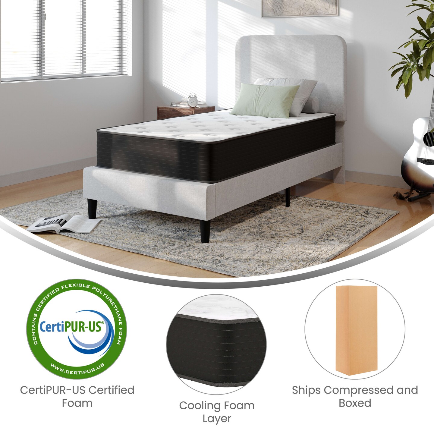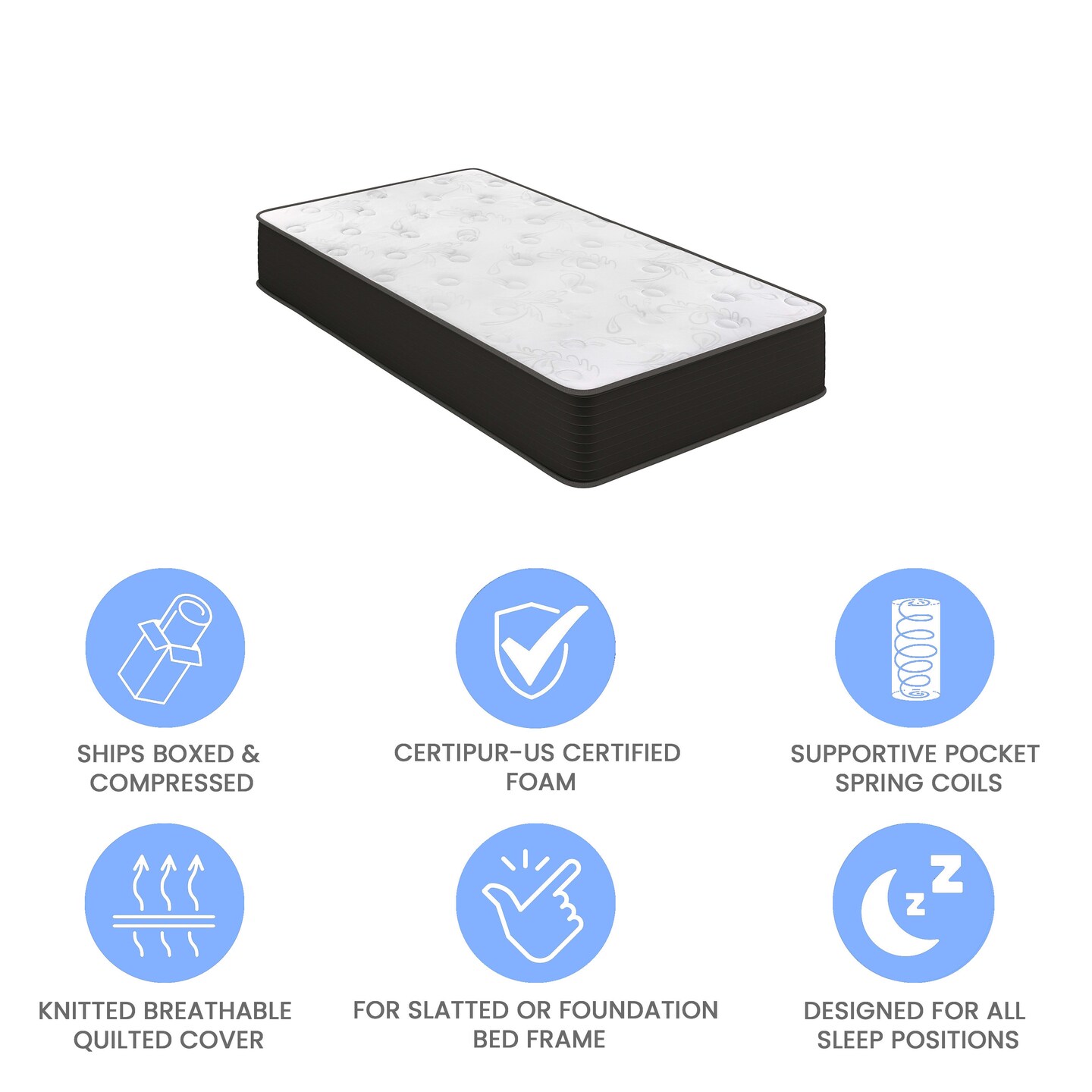 Emma and Oliver Drift 10 Inch Hybrid Mattress, High Density Cooling Foam and Pocket Spring Mattress in a Box, CertiPur-US Certified Foam, White/Black