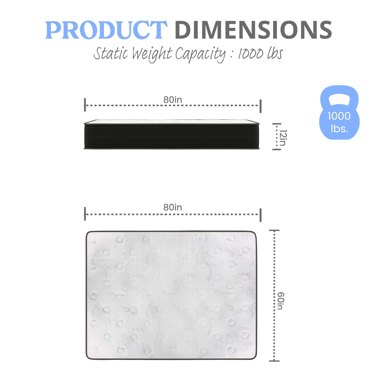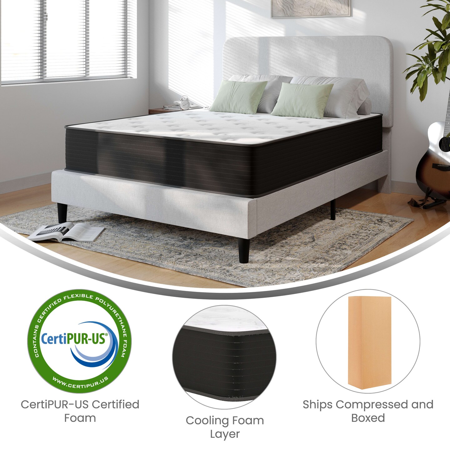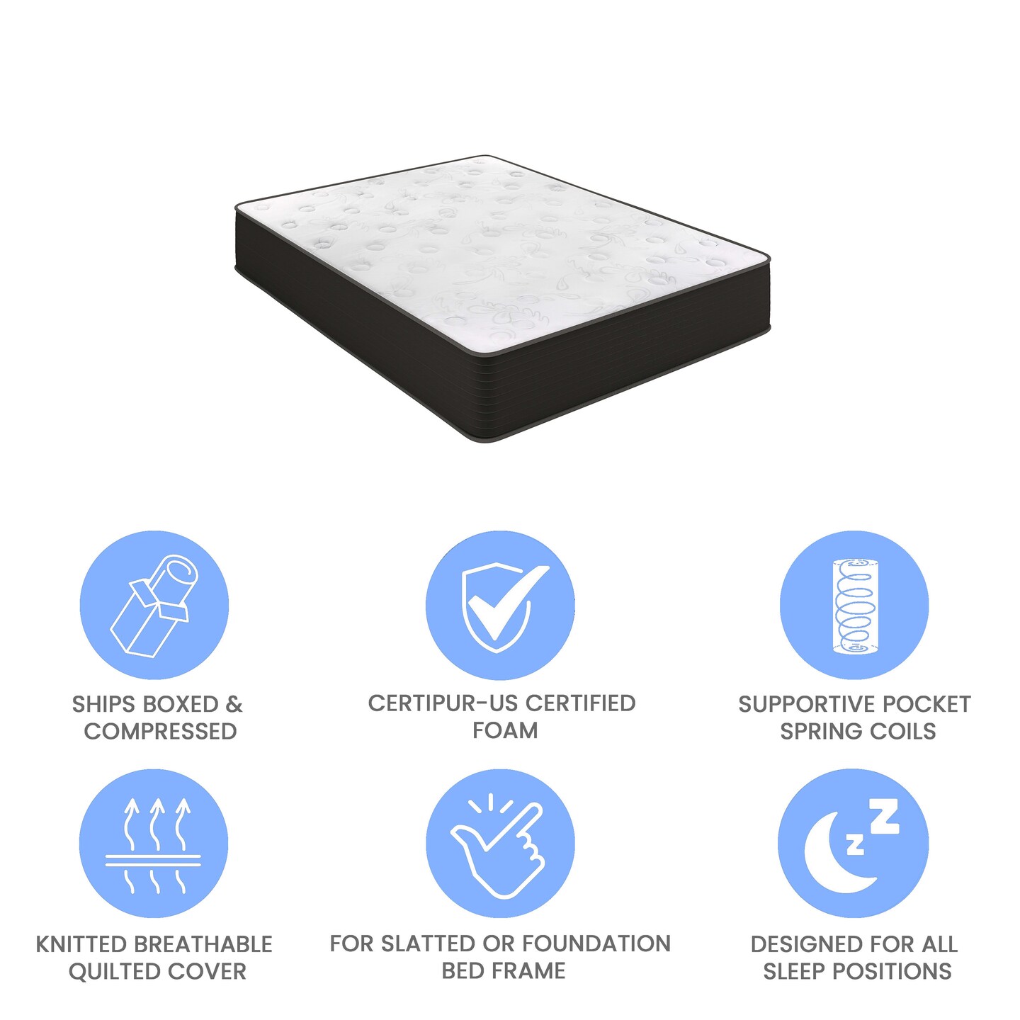 Emma and Oliver Drift 12 Inch Hybrid Mattress, High Density Cooling Foam and Pocket Spring Mattress in a Box, CertiPur-US Certified Foam, White/Black