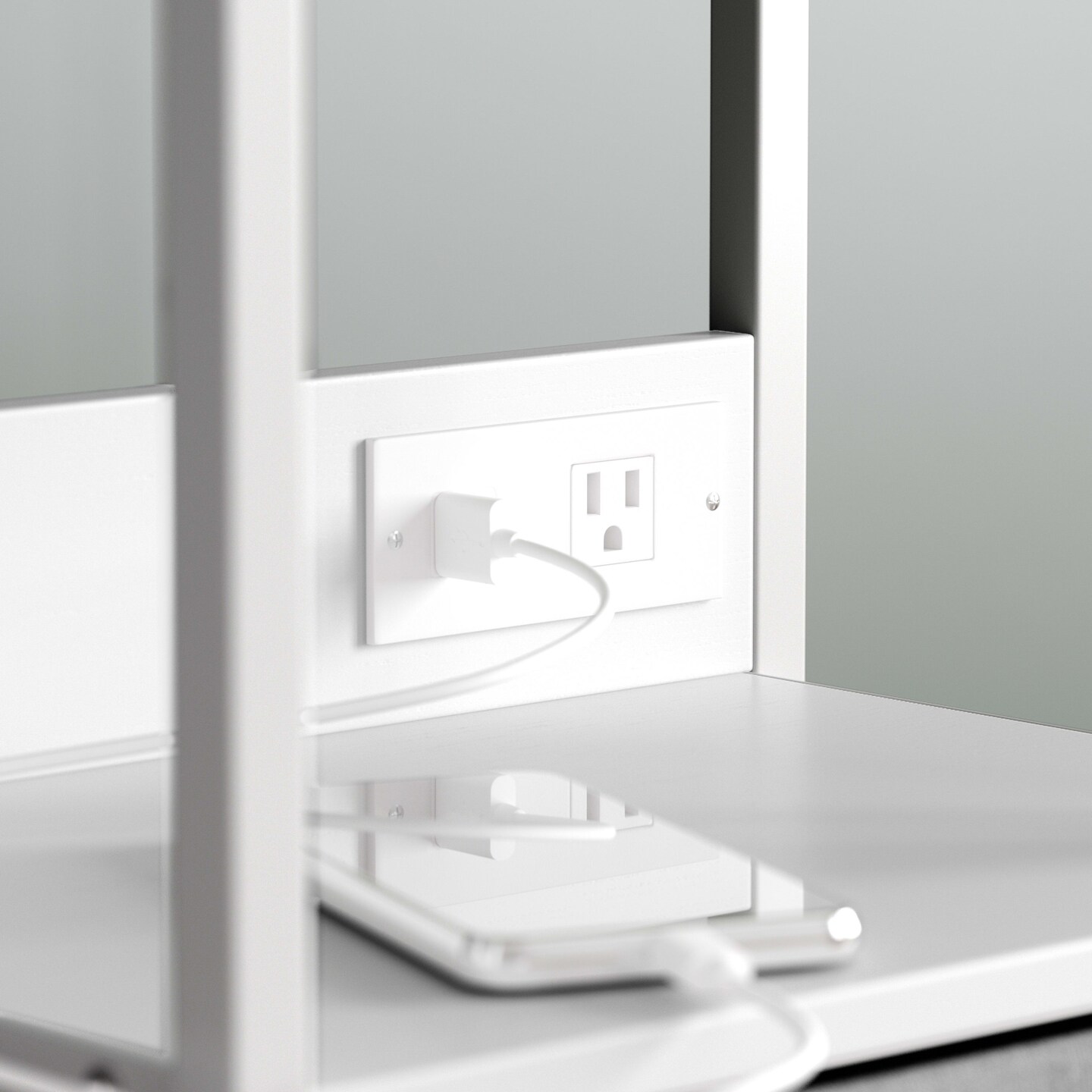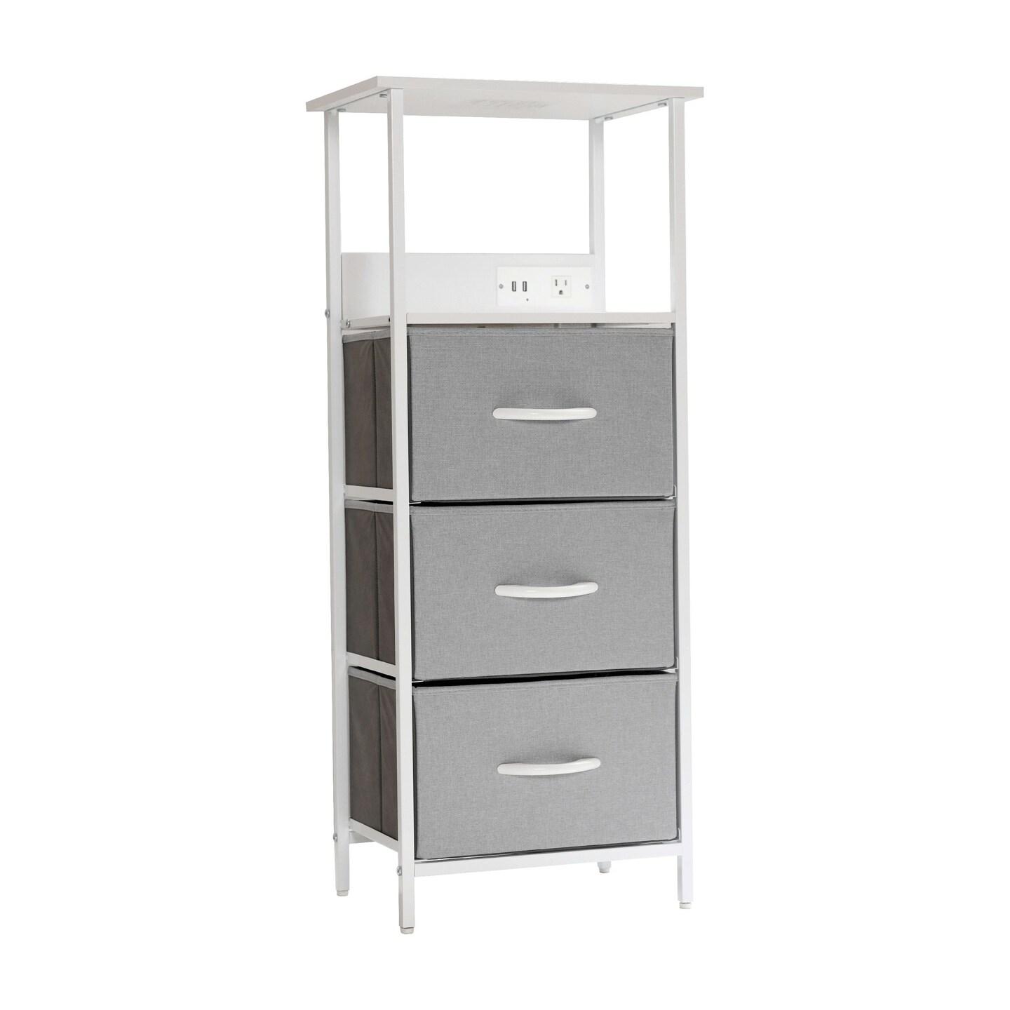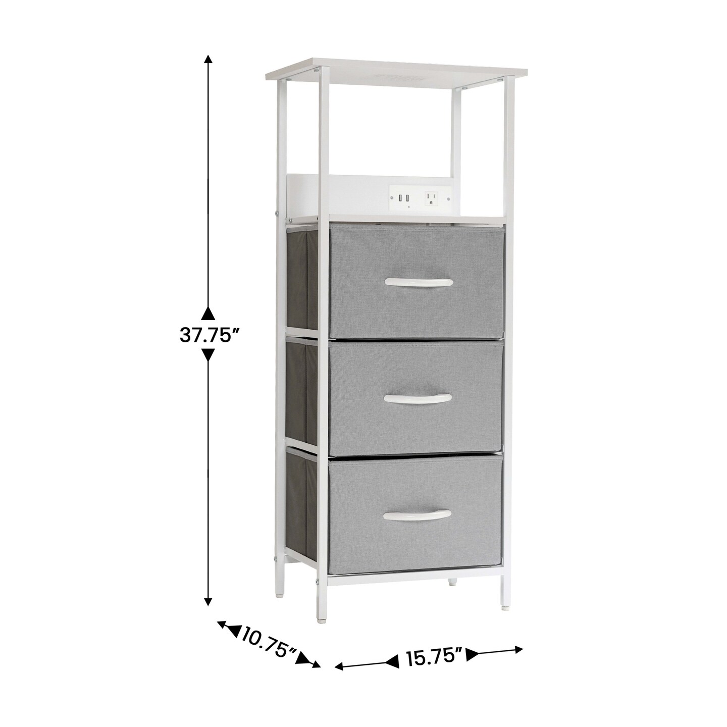 Emma and Oliver Hermes Nightstand with 3 Fabric Drawers, Charging Station with 2 USB Ports/Power Outlet, Engineered Wood Top, Wood Handles, Metal Frame