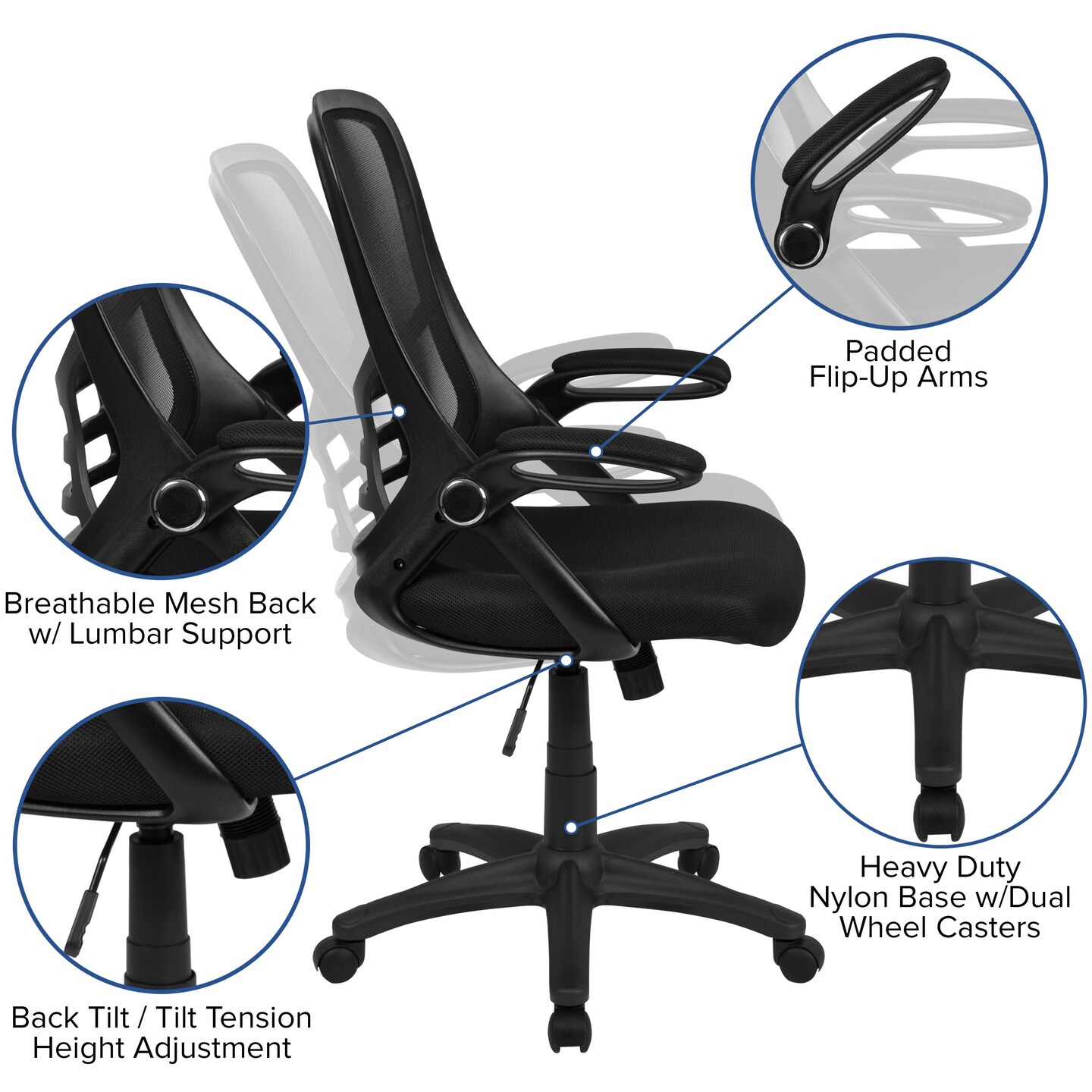 Emma and Oliver High Back Mesh Ergonomic Office Chair with Flip-up Arms