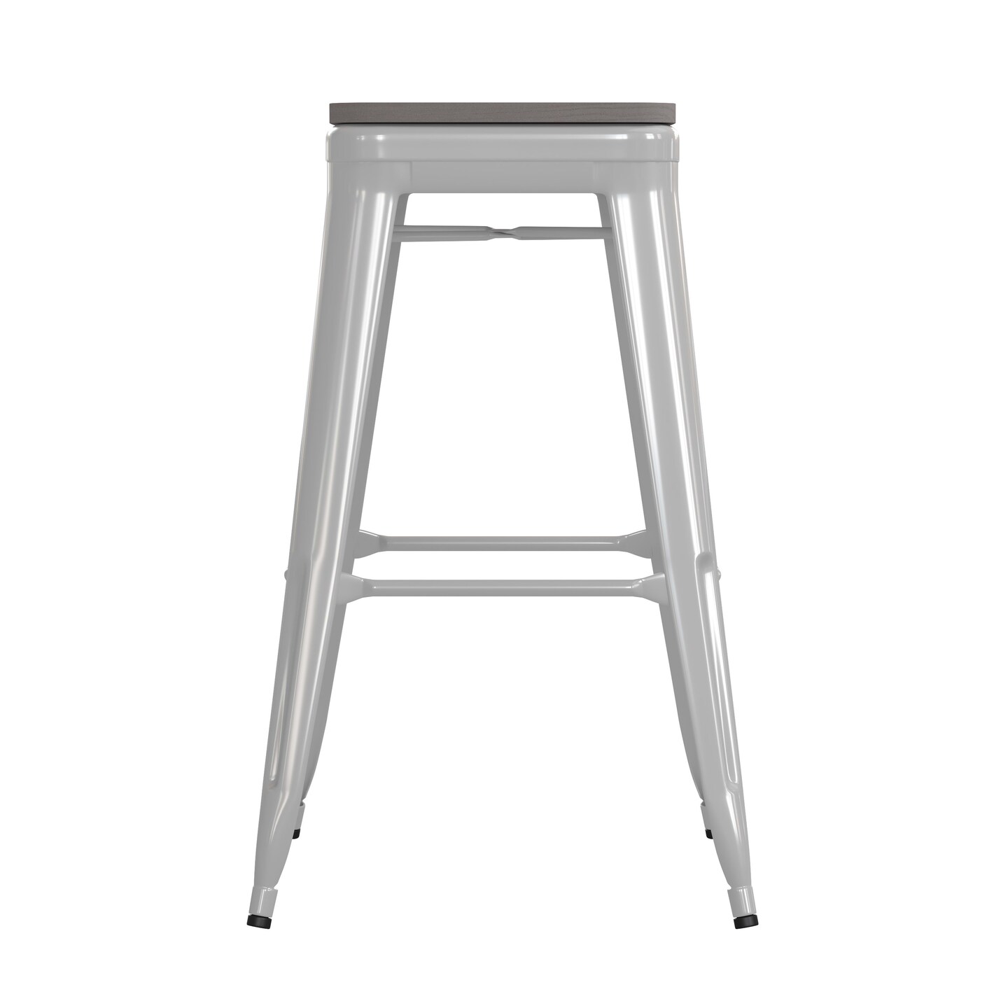 Emma and Oliver Kam Backless Metal Indoor-Outdoor Stool with All-Weather Polystyrene Seat