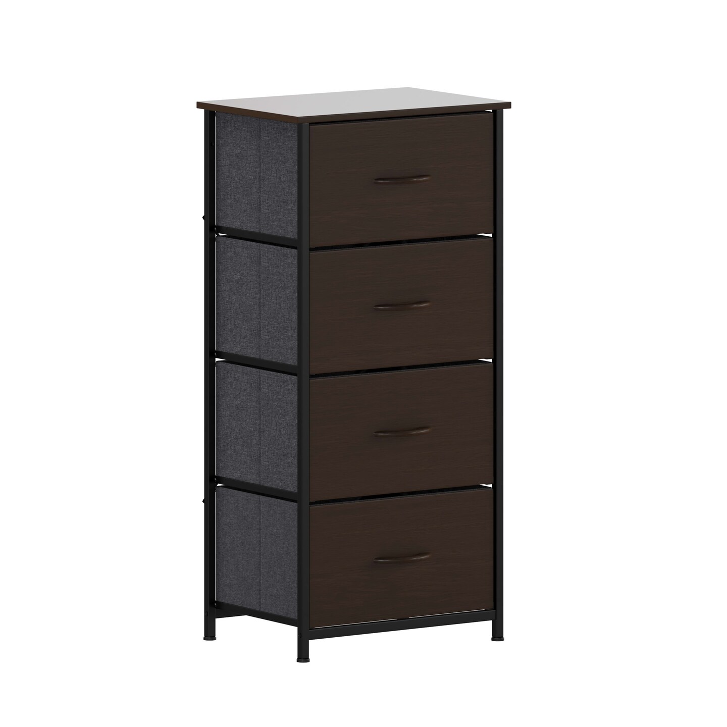 Emma and Oliver Marley 4 Drawer Storage Dresser with Cast Iron Frame, Wood Top and Easy Pull Engineered Wood Drawers with Wooden Handles