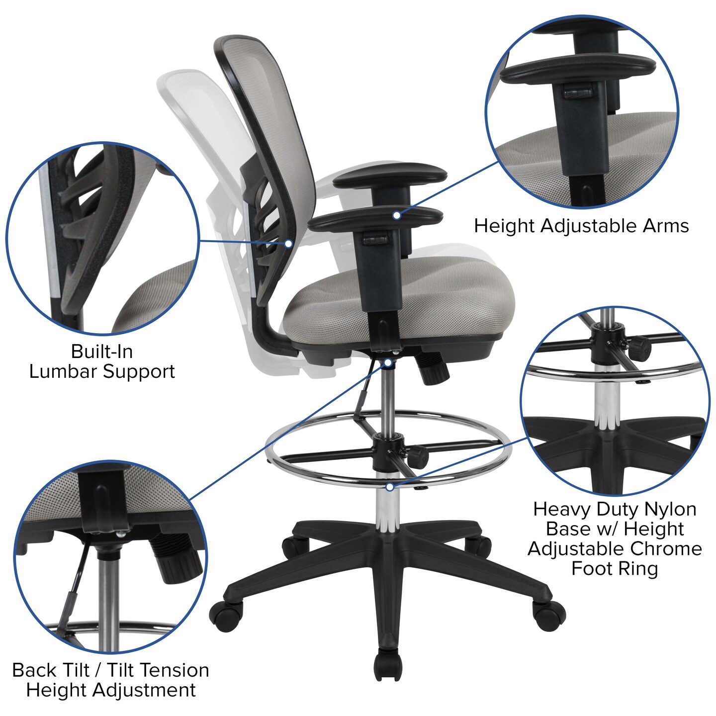 Emma and Oliver Mid-Back Mesh Adjustable Ergonomic Drafting Chair, Task Chair
