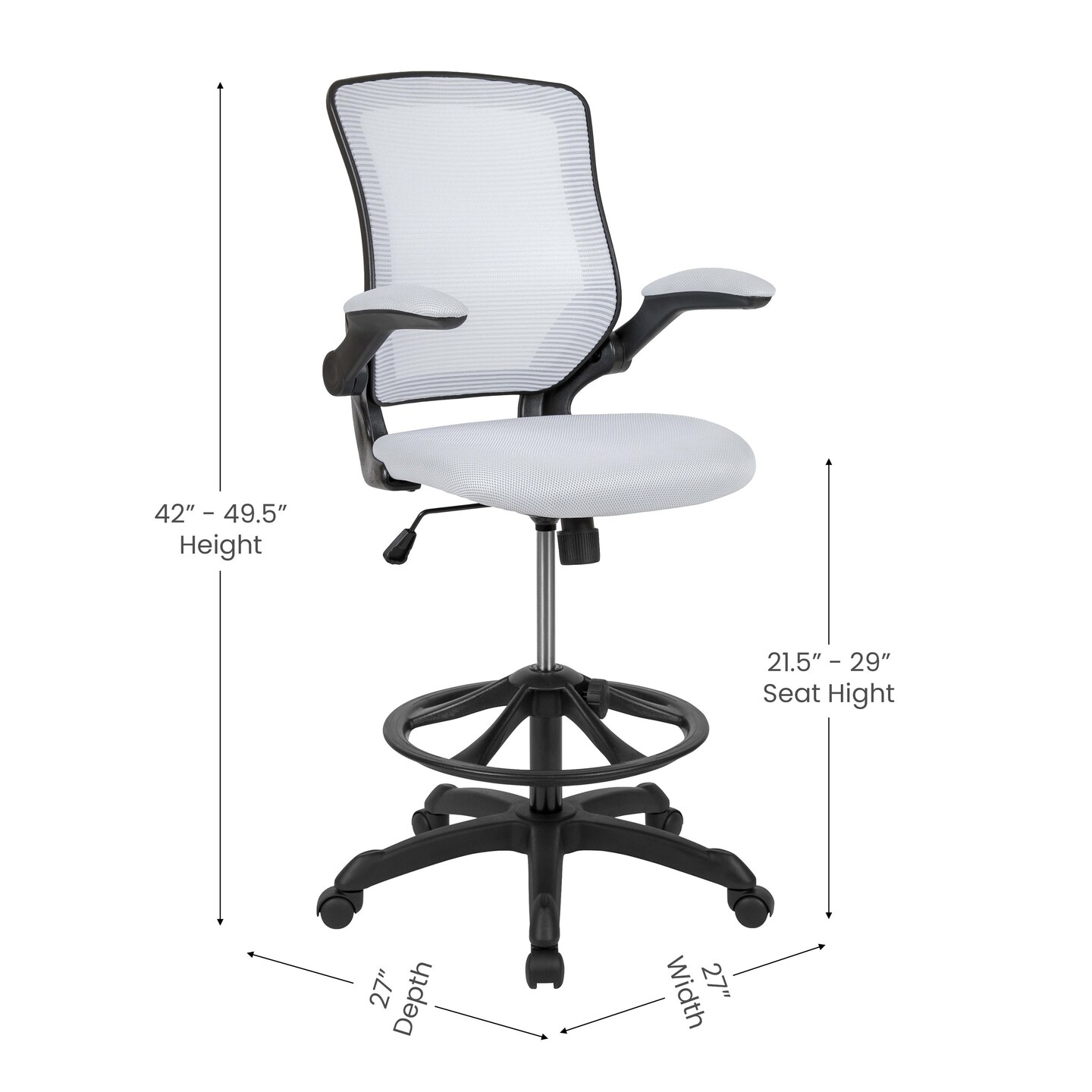 Emma and Oliver Mid-Back Mesh Ergonomic Drafting Chair with Foot Ring and Flip-Up Arms