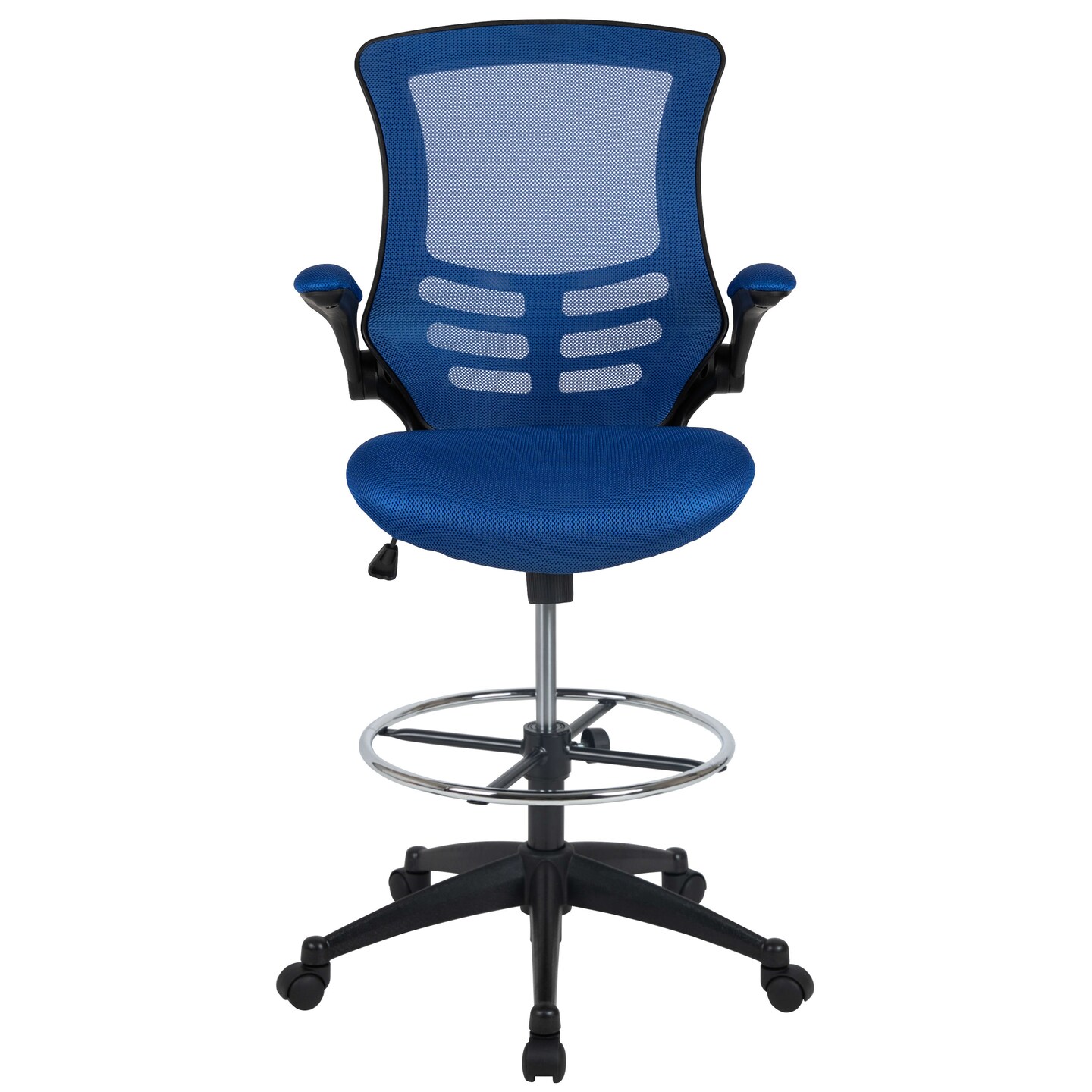 Emma and Oliver Mid-Back Mesh Ergonomic Drafting Chair with Foot Ring and Flip-Up Arms