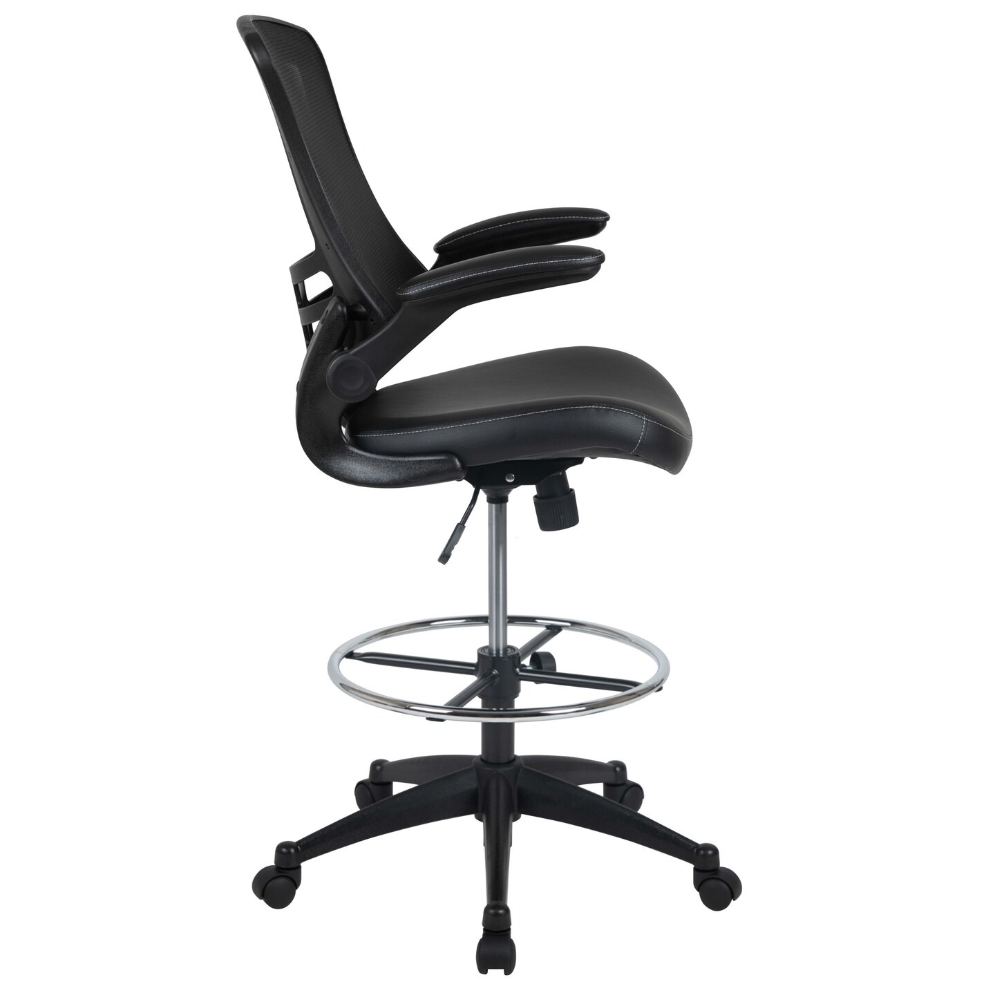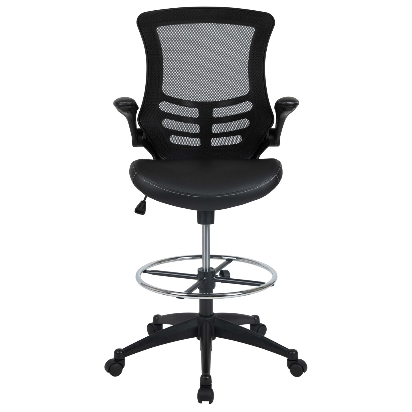 Emma and Oliver Mid-Back Mesh Ergonomic Drafting Chair with Foot Ring and Flip-Up Arms