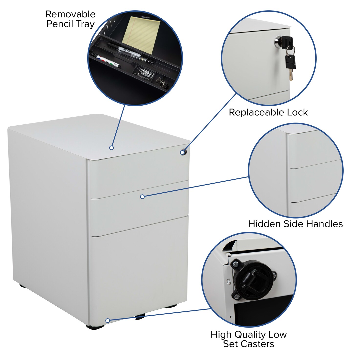 Emma and Oliver Modern 3-Drawer Mobile Locking Filing Cabinet Storage Organizer