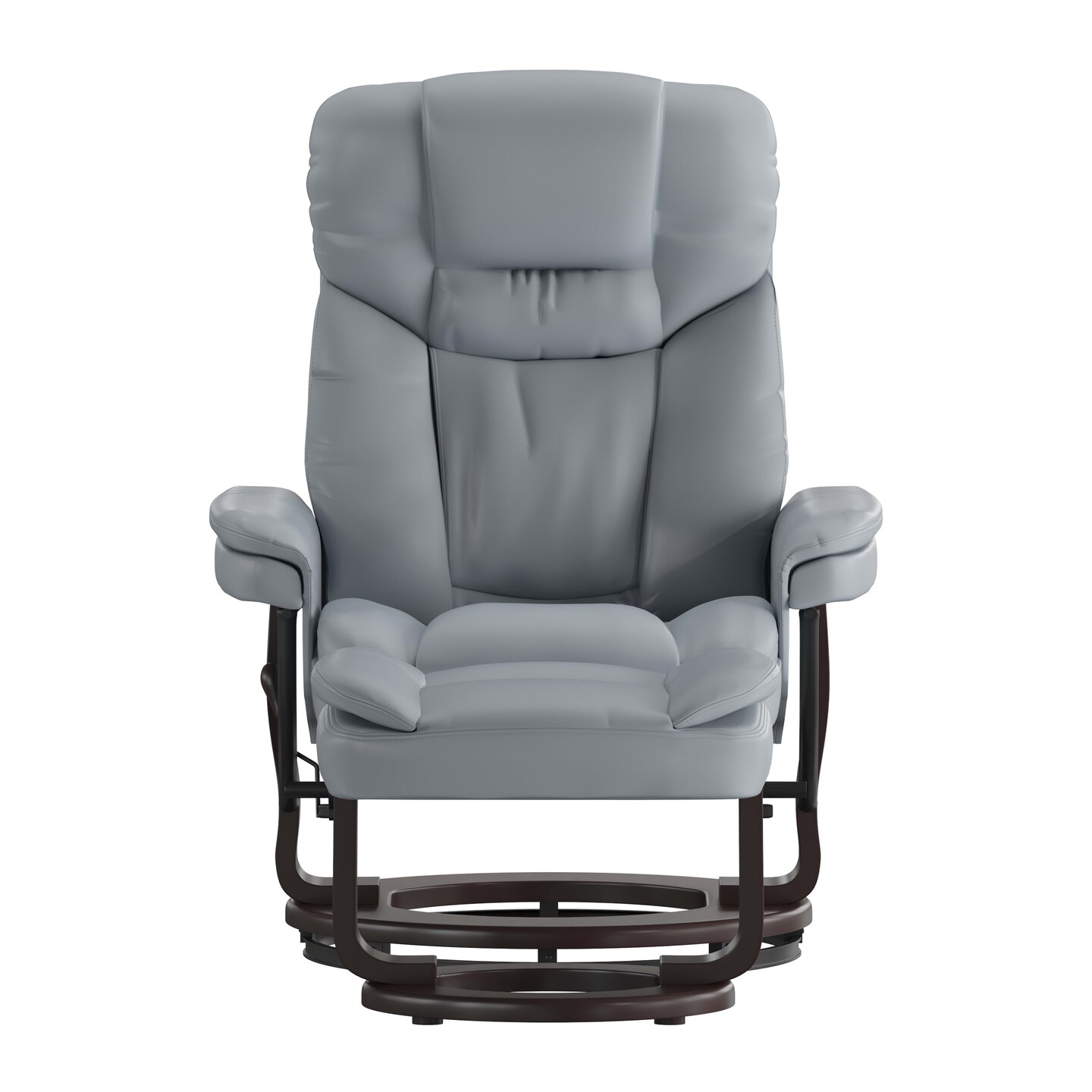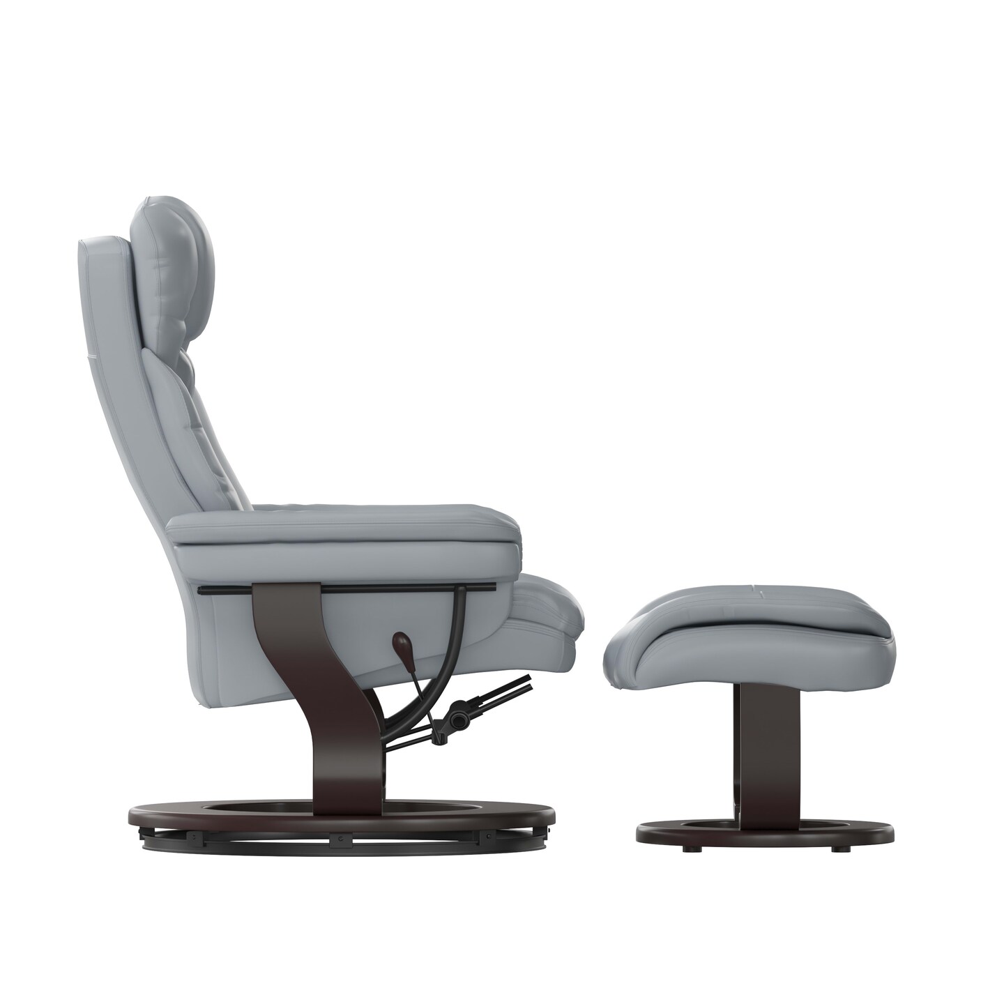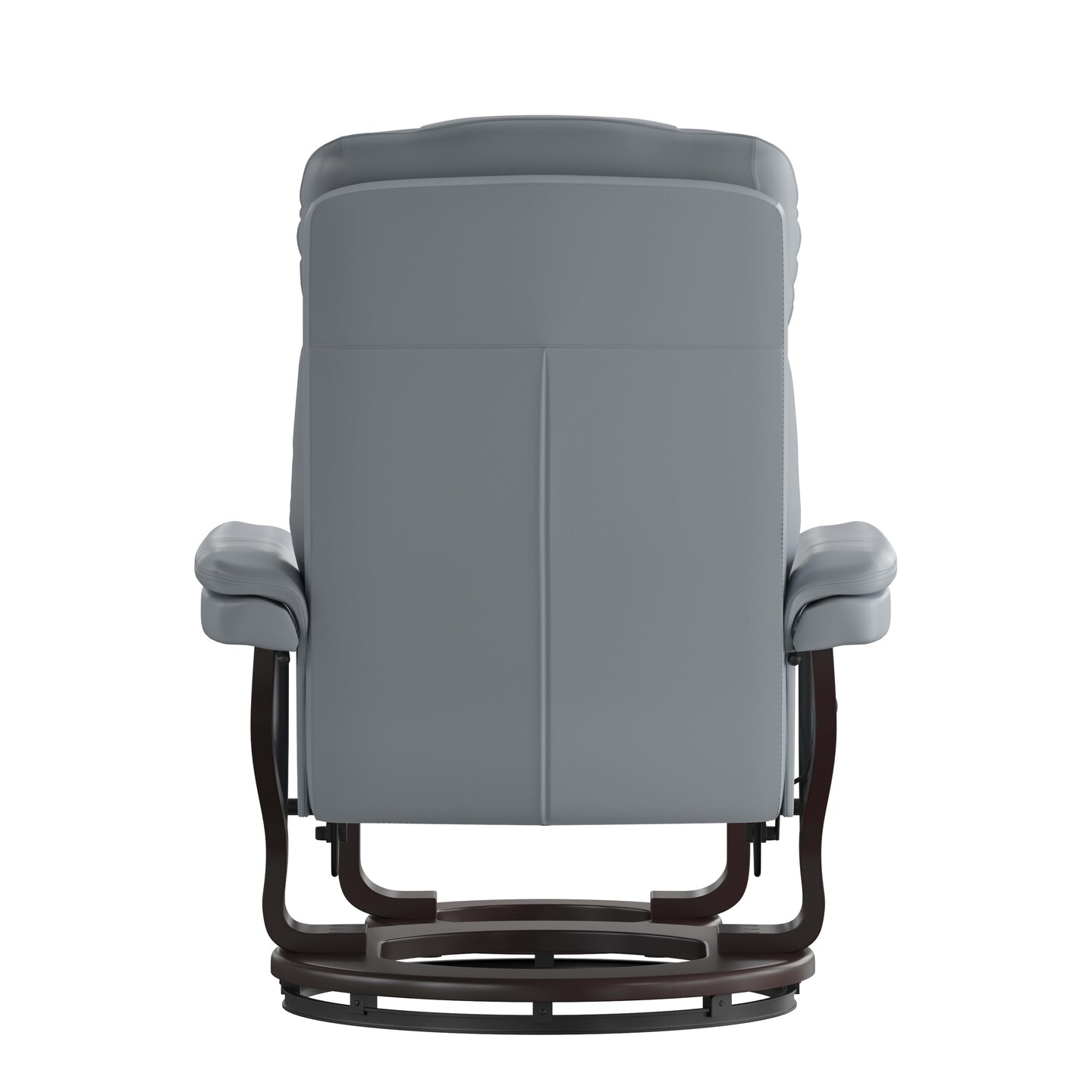 Emma and Oliver Multi-Position Recliner & Curved Ottoman with Swivel Wood Base