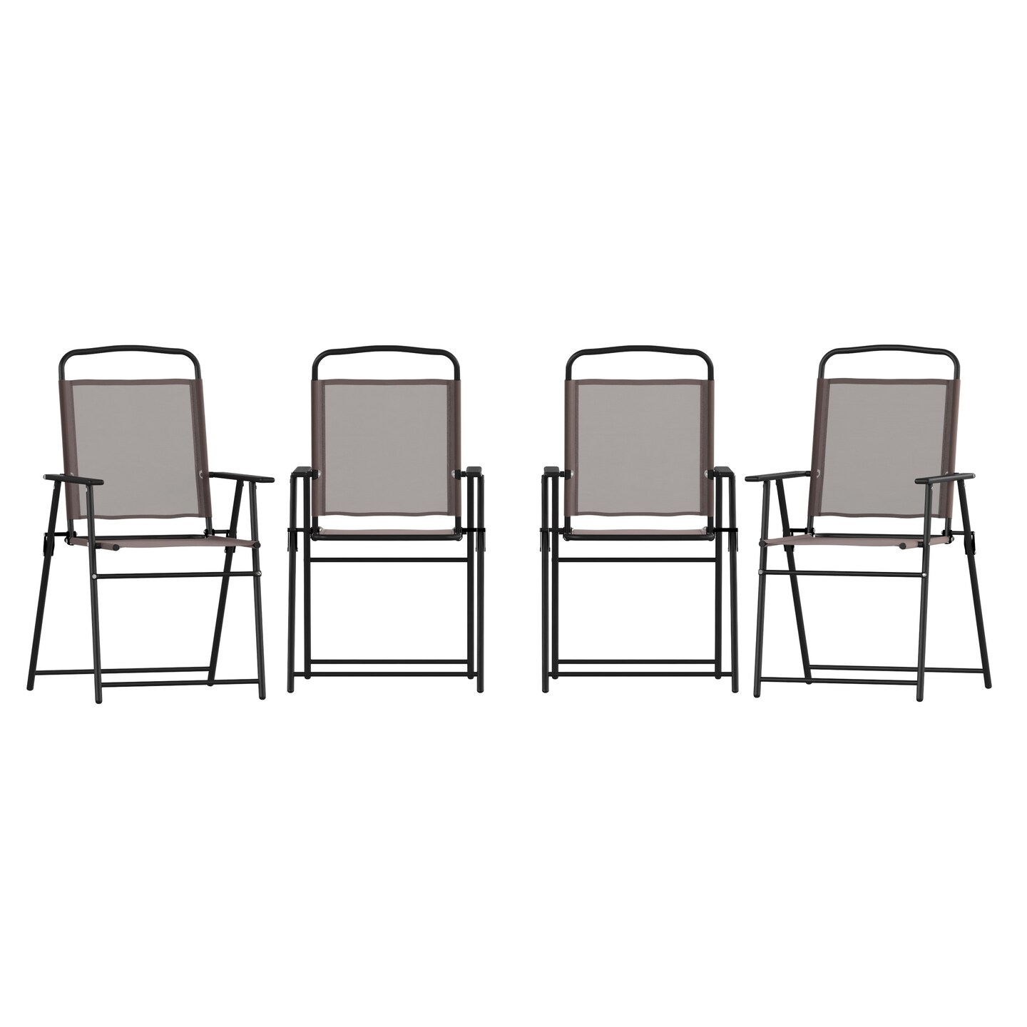 Emma and Oliver Munroe Set of 4 Textilene Folding Sling Style Patio Chairs with Armrests