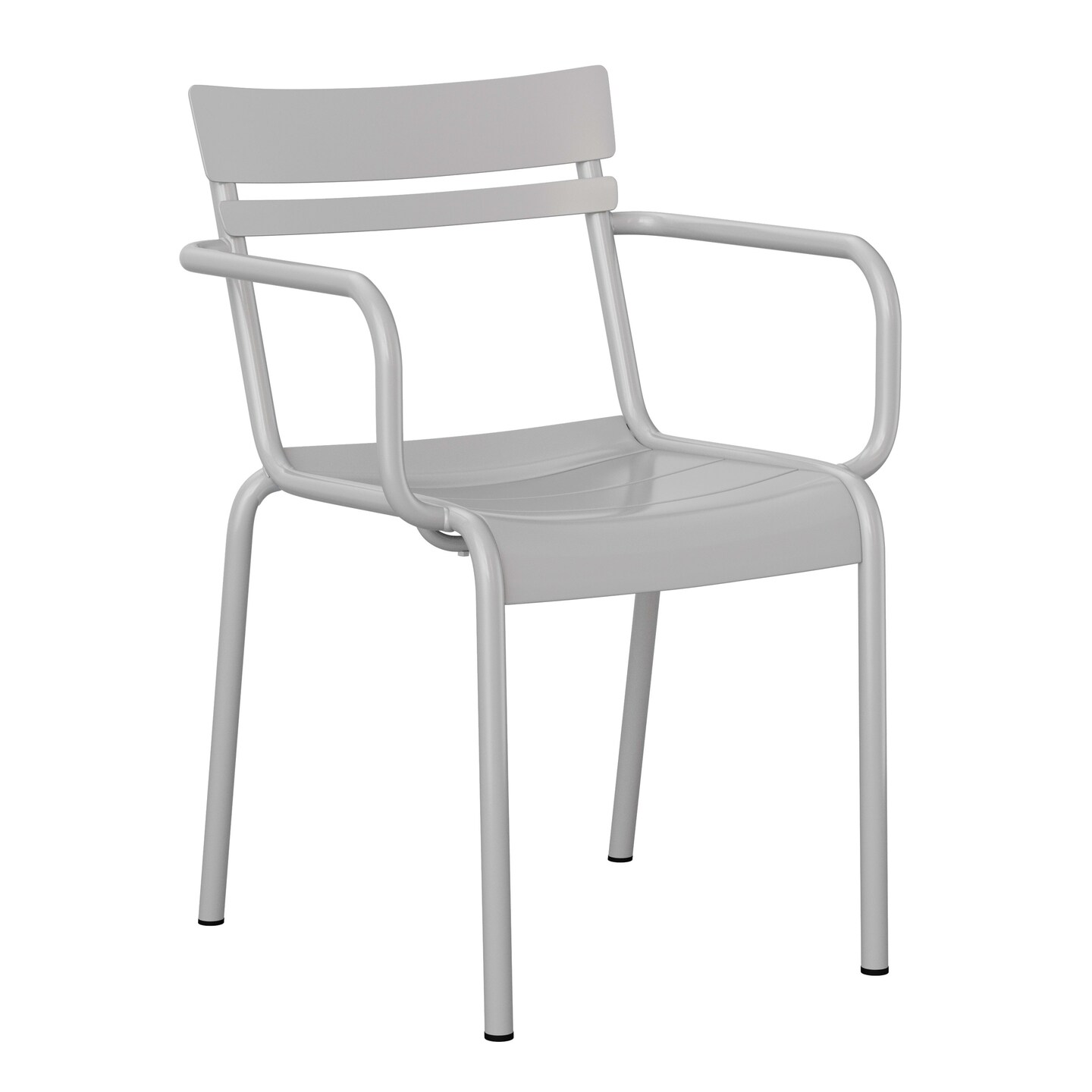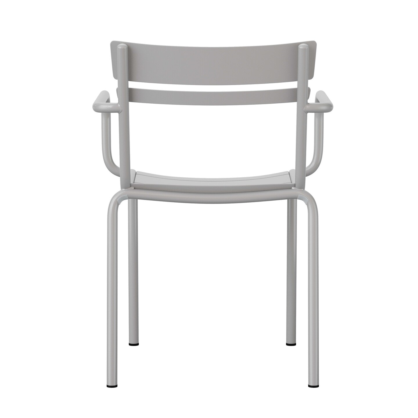 Emma and Oliver Rennes Powder Coated Steel Stacking Dining Chair with Arms and 2 Slat Back for Indoor-Outdoor Use