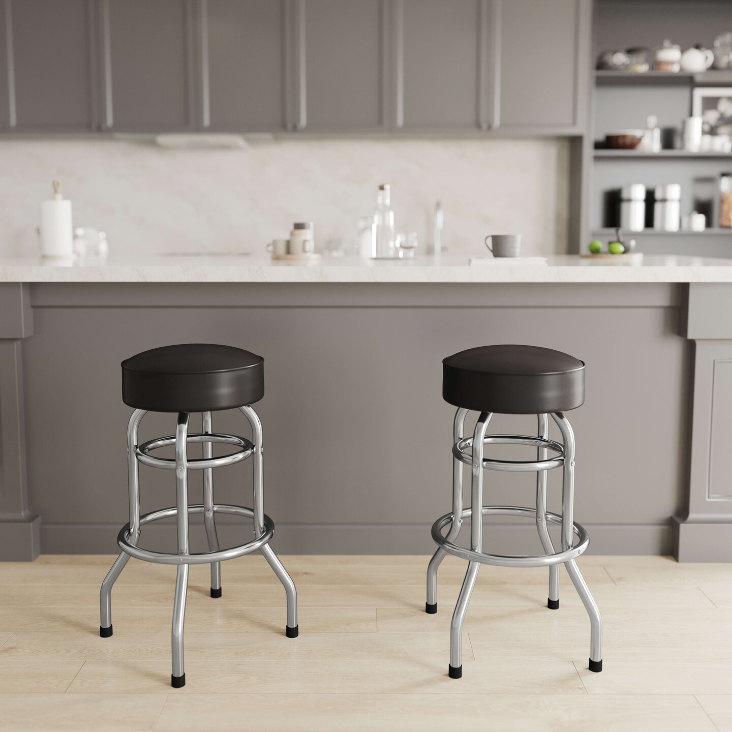 Emma and Oliver Retro Backless Double Ring Chrome Restaurant Dining Barstool