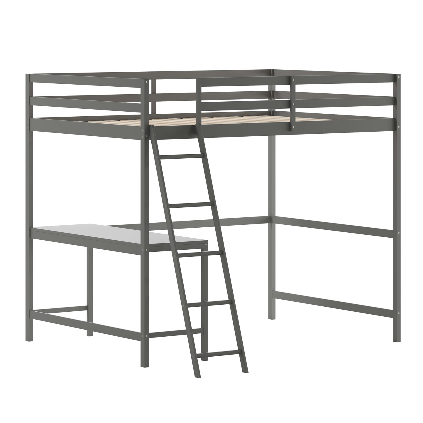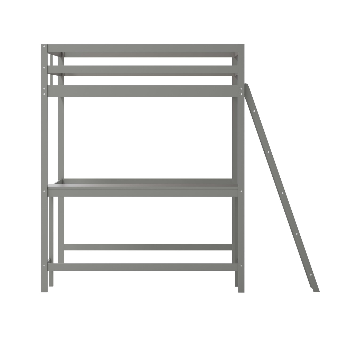 Emma and Oliver Ridley Twin Wood Loft Bed Frame with Protective Guardrails and Integrated Desk and Ladder for Use with Any 6-8" Thick Mattress