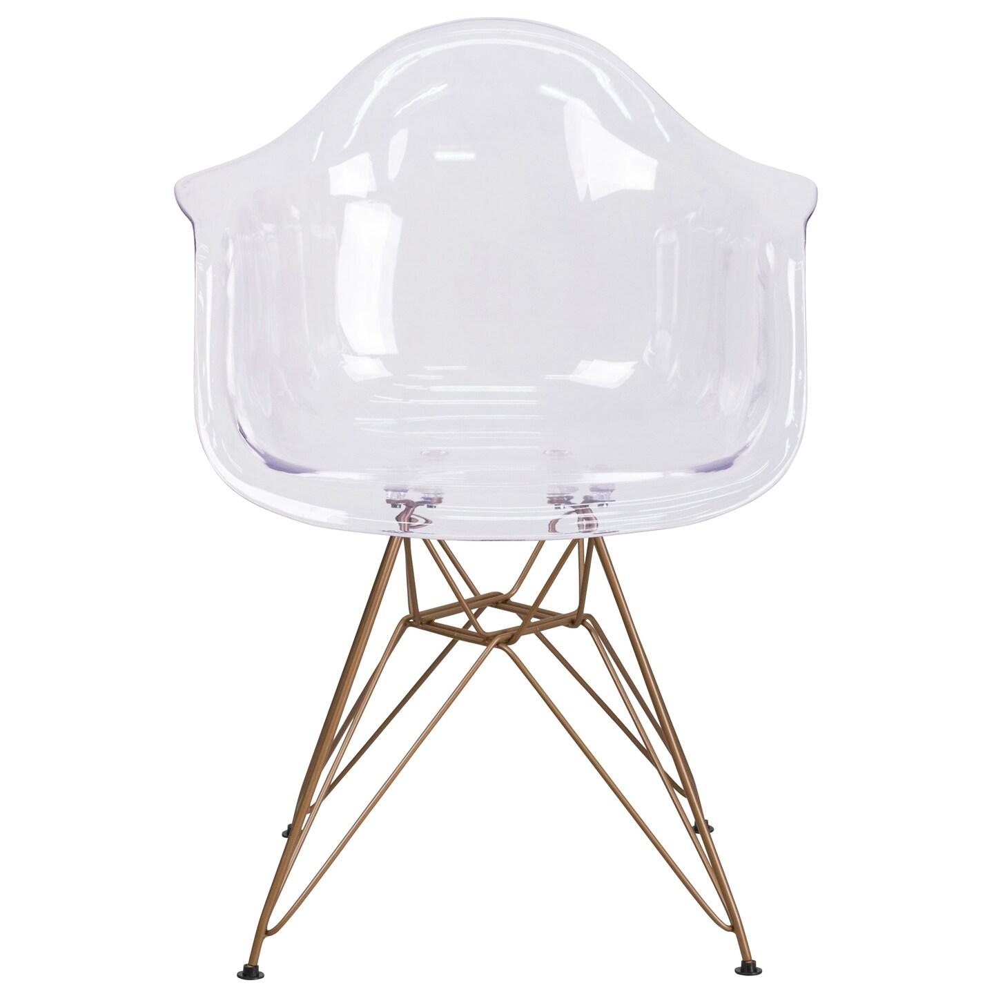 Emma and Oliver Transparent Side Chair with Arms and Gold Base