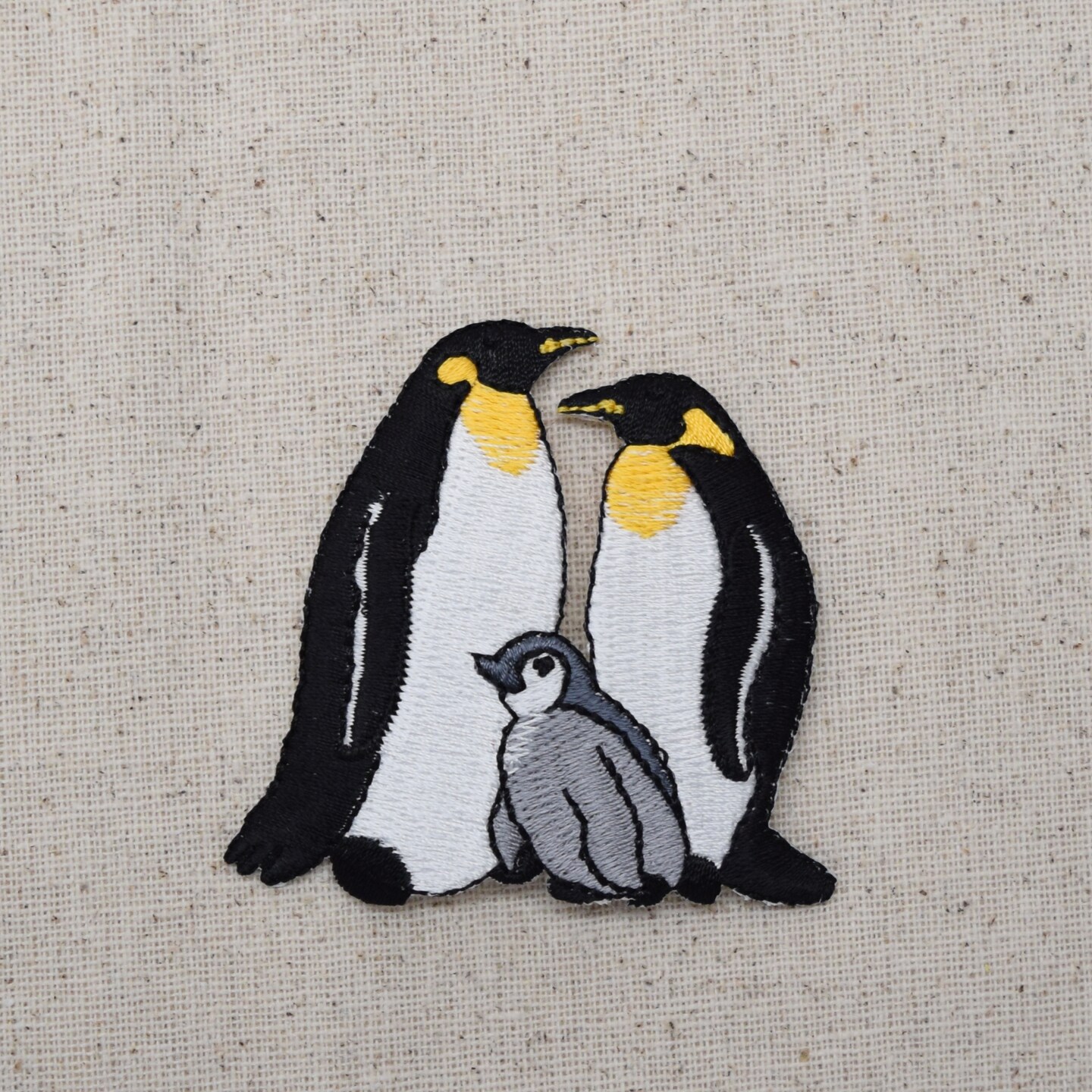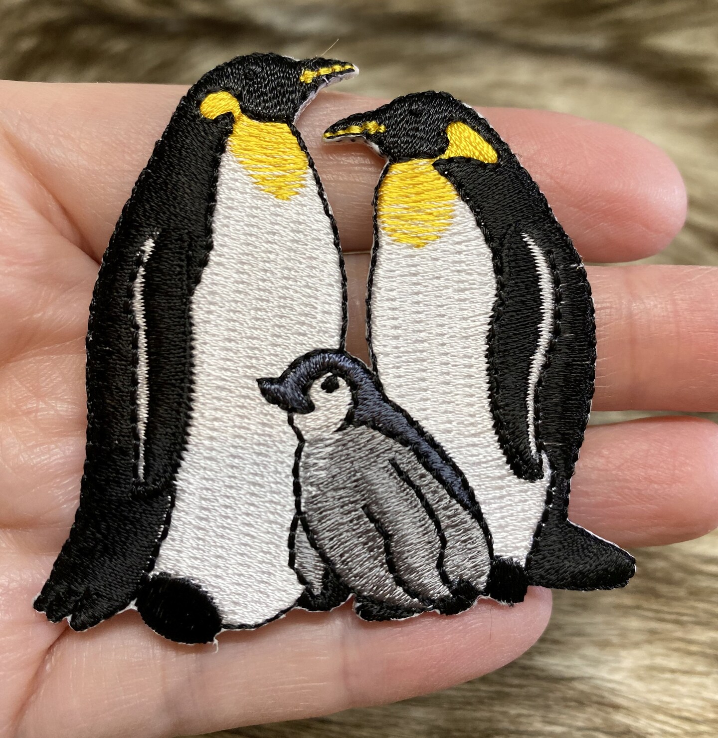 Emperor Penguin Family, Antarctic Animals, Birds, Embroidered, Iron on Patch
