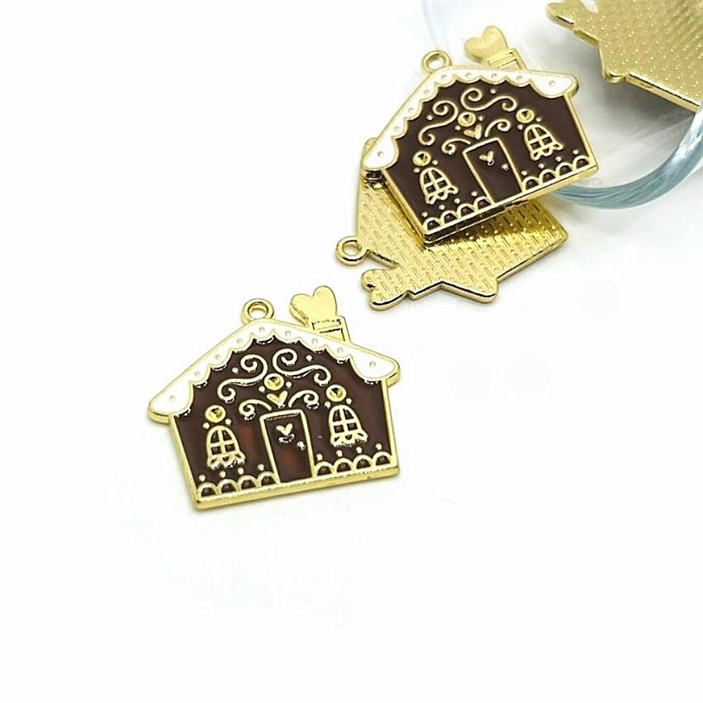 Enamel Christmas Gingerbread House Charms, 24x27mm
