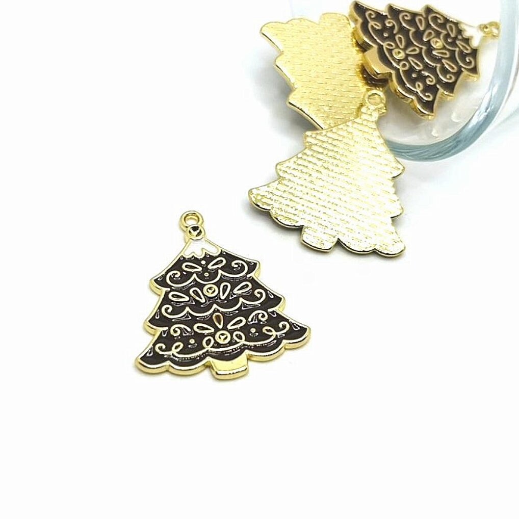 Enamel Christmas Gingerbread Tree Charms, 29x25mm